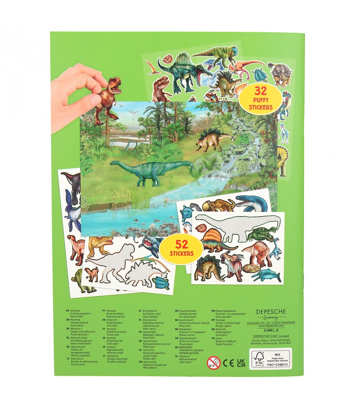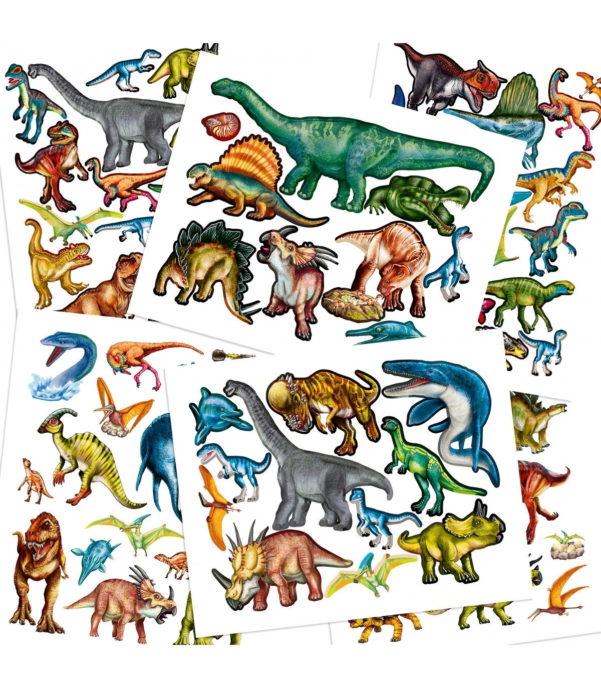 Cuaderno de pegatinas con 84 maravillosas pegatinas (4 páginas de pegatinas de papel y 2 páginas de pegatinas "puffy"de goma) para disfrutar a lo grande con los dinosaurios. El cuaderno tiene 20 páginas con fondos que sirven de ambientación para recrear escenas del Jurásico.