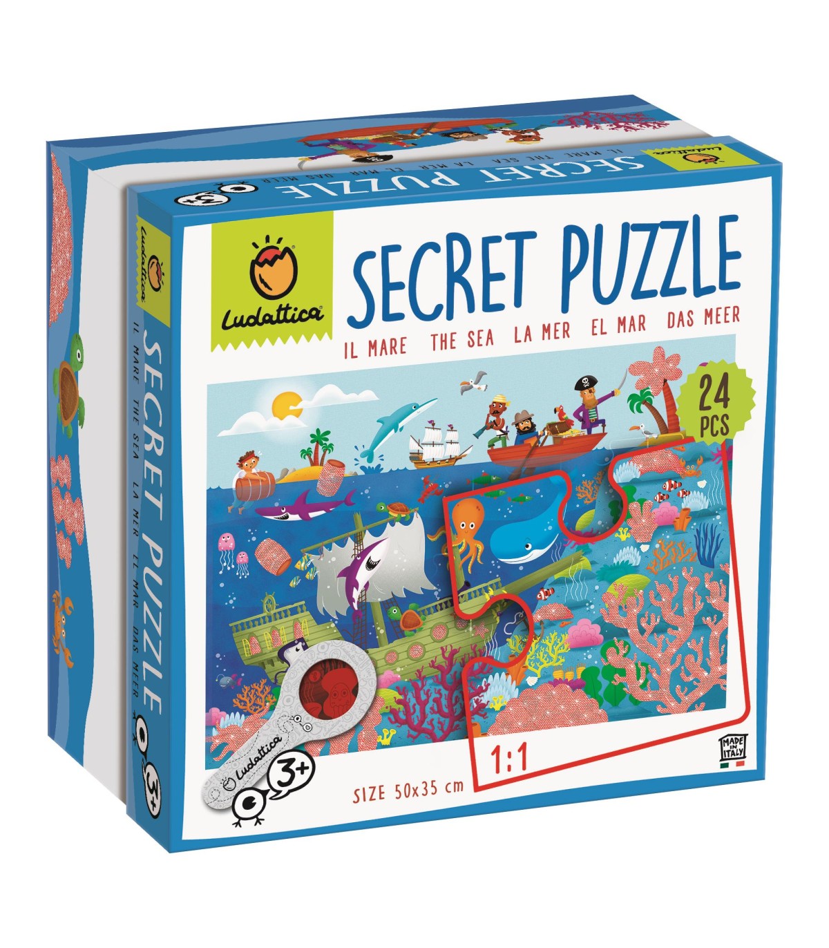 Encaja las 24 piezas y construye el escenario del mar, ¡después descubre los secretos del mundo de los piratas con las gafas proporcionadas!