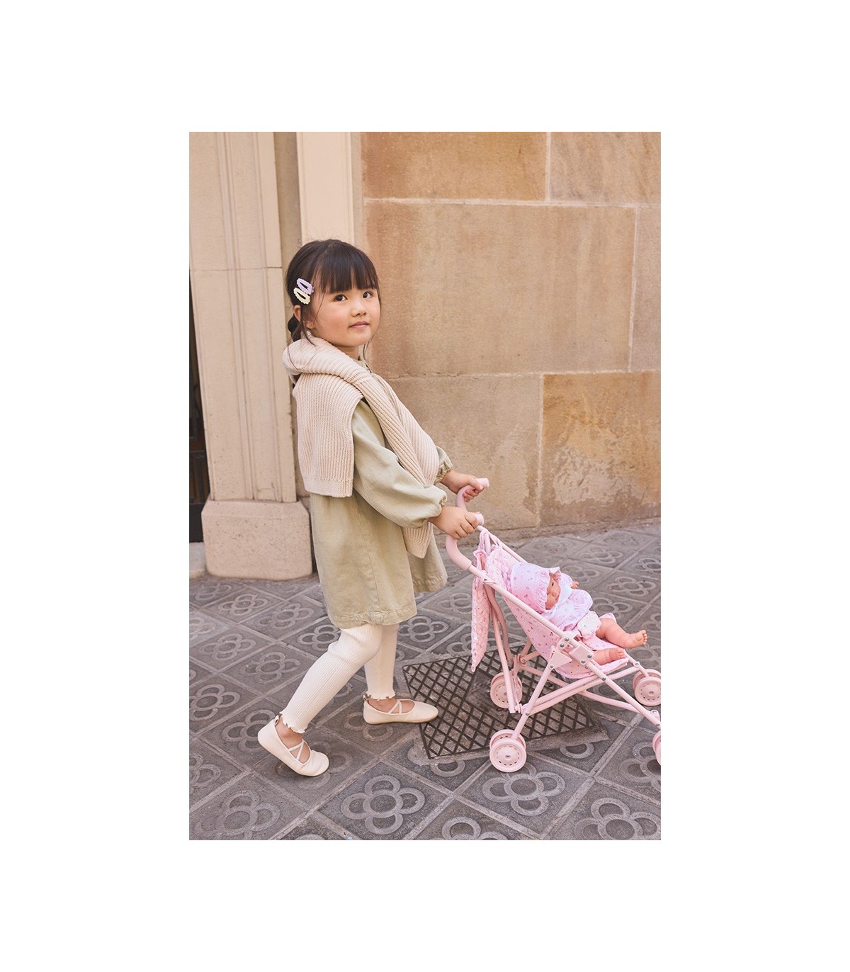 Una sillita en la que pasear y divertirse con tus muñecos preferidos? Monnëka presenta la sillita para muñecas plegable, con apertura de seguridad para evitar accidentes y bolsito con estampado a juego en el que guardar todos los accesorios que sus muñecos necesiten. Tu peque lo pasará en grande imitando a los mayores y dando cuidados a sus muñecos con la sillita Flowers.
