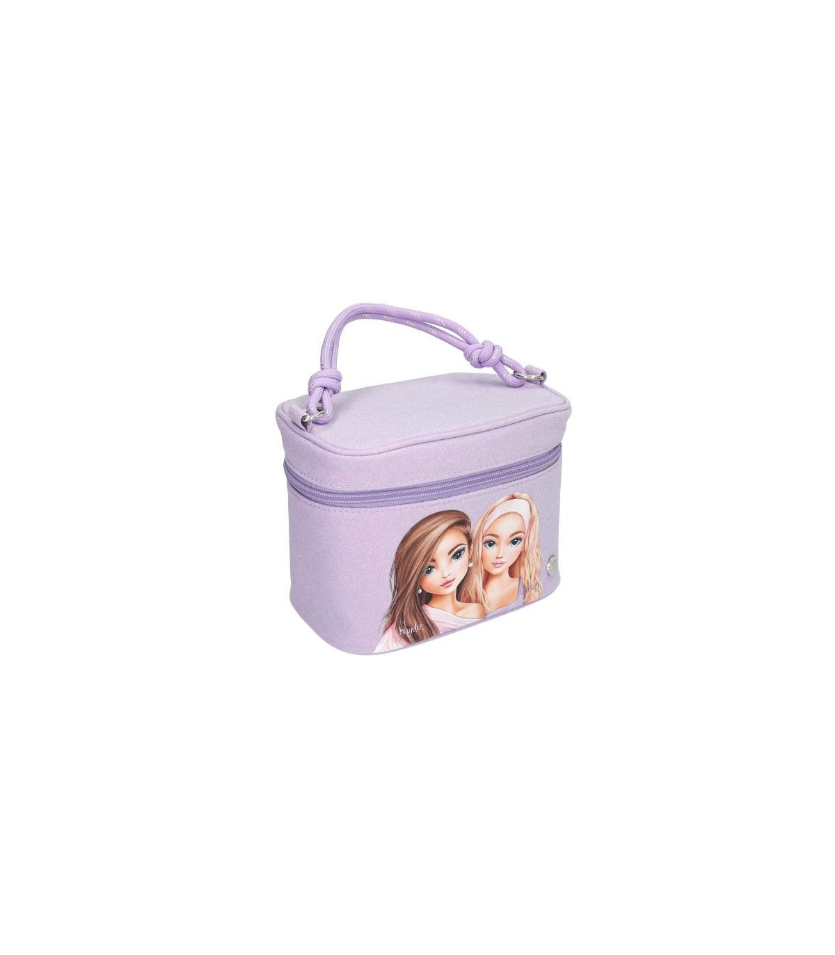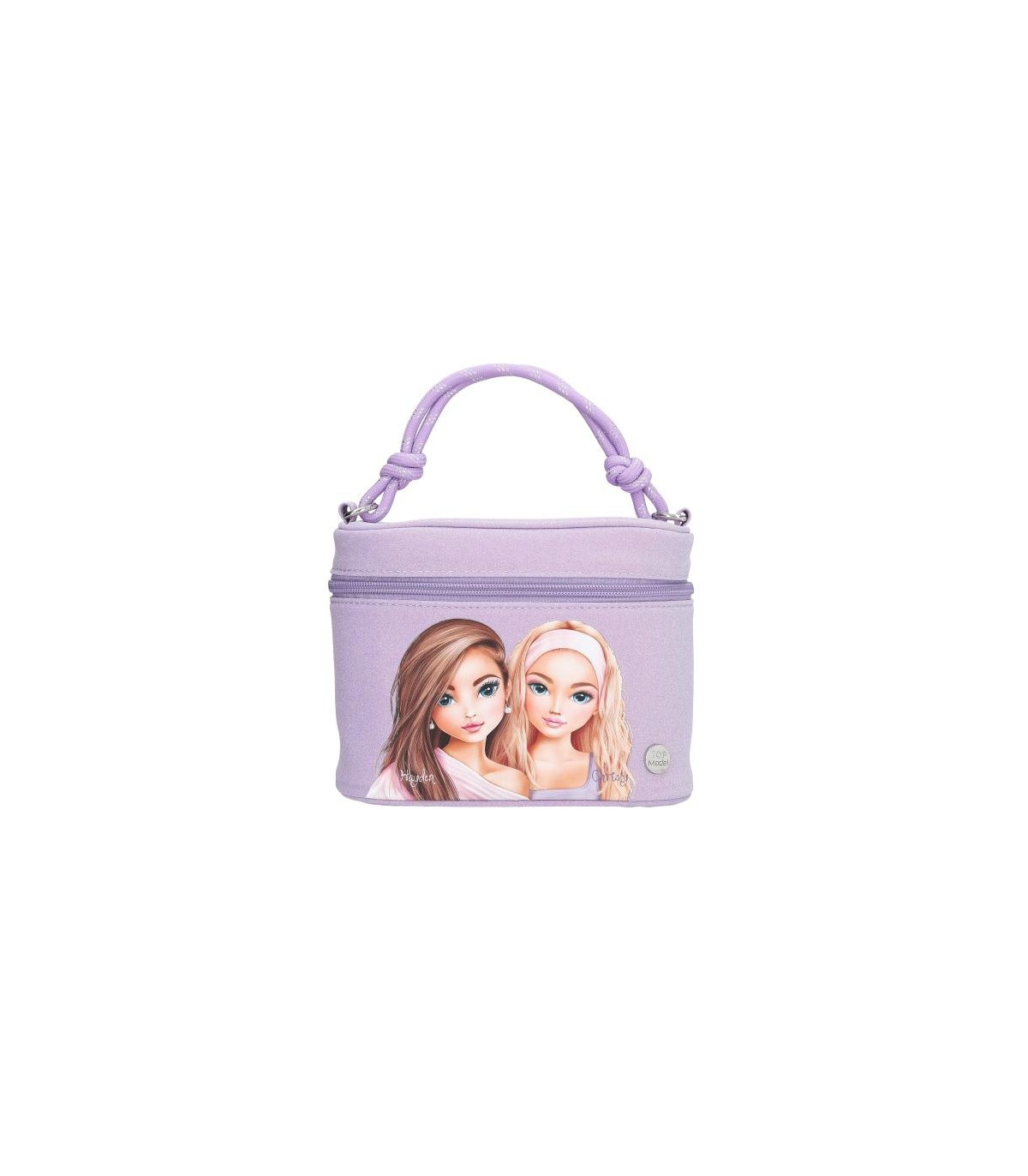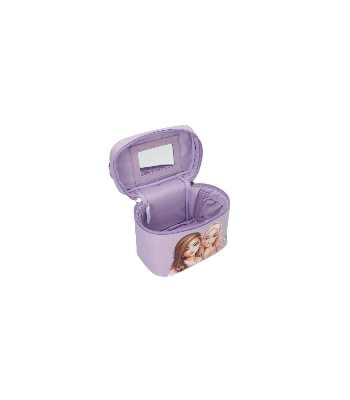 ¡Brillo, glamur, genial! El maletín-neceser lila de TOPModel brilla con elegancia por todas sus caras. Con un motivo de dos modelos a gran tamaño en la cara principal y asa de cordón. Espejo integrado en la tapa abatible y muchos bolsillos en el interior. Material principal: poliéster 100 por 100.