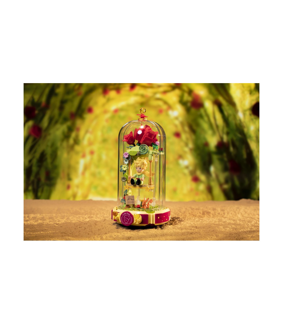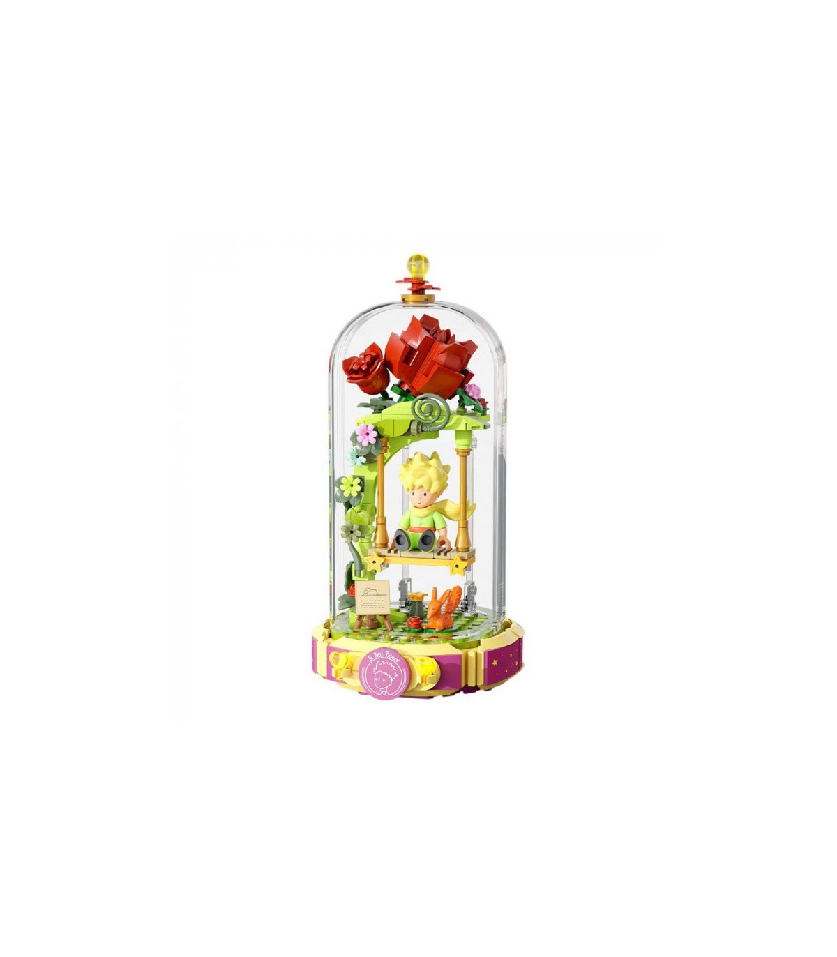 Este set de construcción El Principito: Columpio de rosas, está inspirado en la obra de Antoine de Saint-Exupéry y fue creado por Pantasy. Colección Eternity Series. El set está formado por 234 piezas y requiere alrededor de 40 minutos para su montaje. La edad mínima recomendada es de 6 años. Incluye un manual de instrucciones. Altura: 19,7cm.