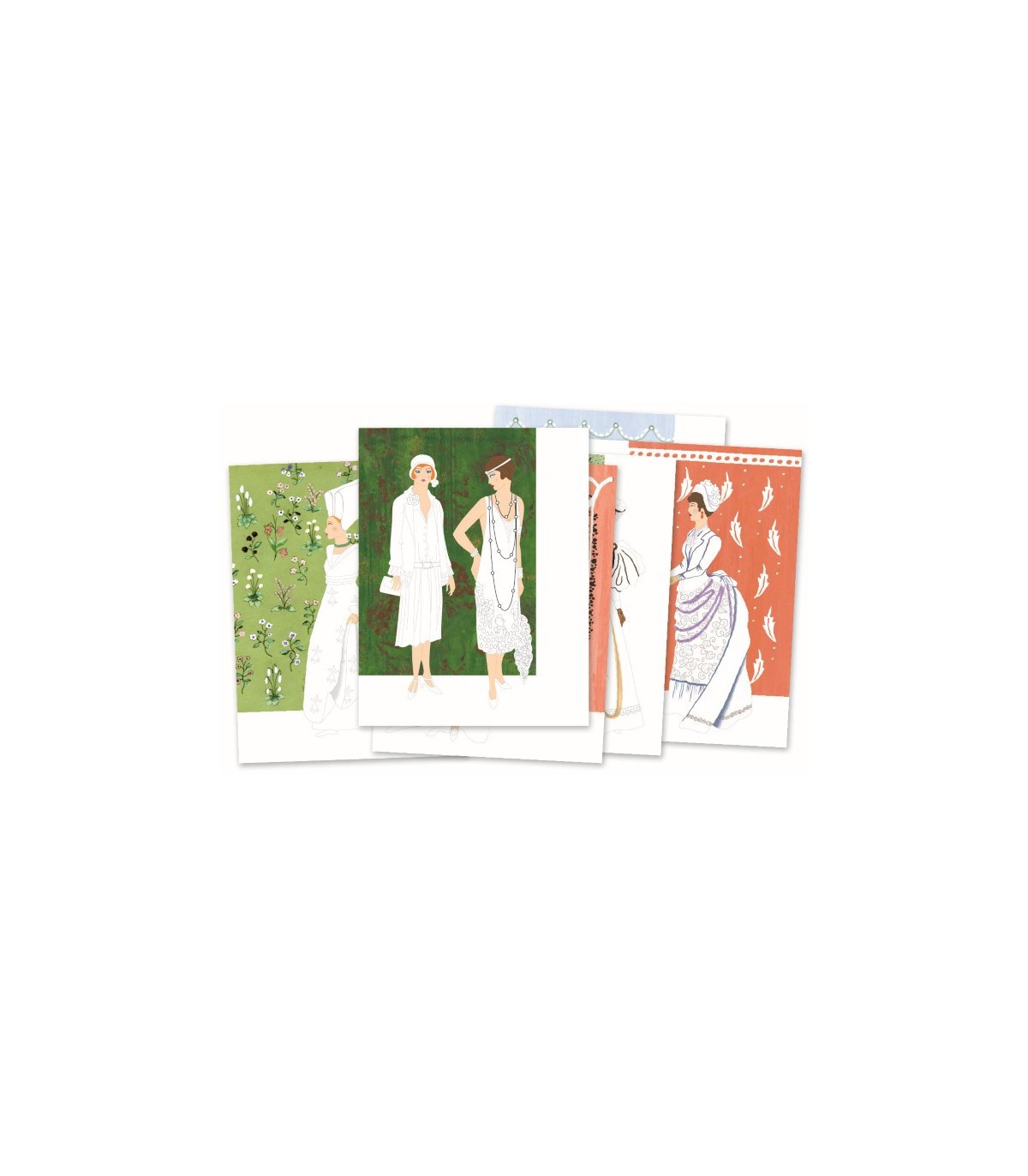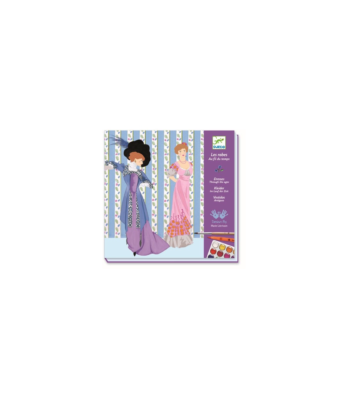 -Con pastillas de acuarela y rotuladores, 13 vestidos históricos para colorear. Desde la Edad Media hasta los años 50, he aquí una divertida actividad creativa y un poco de historia de la moda a lo largo del tiempo.