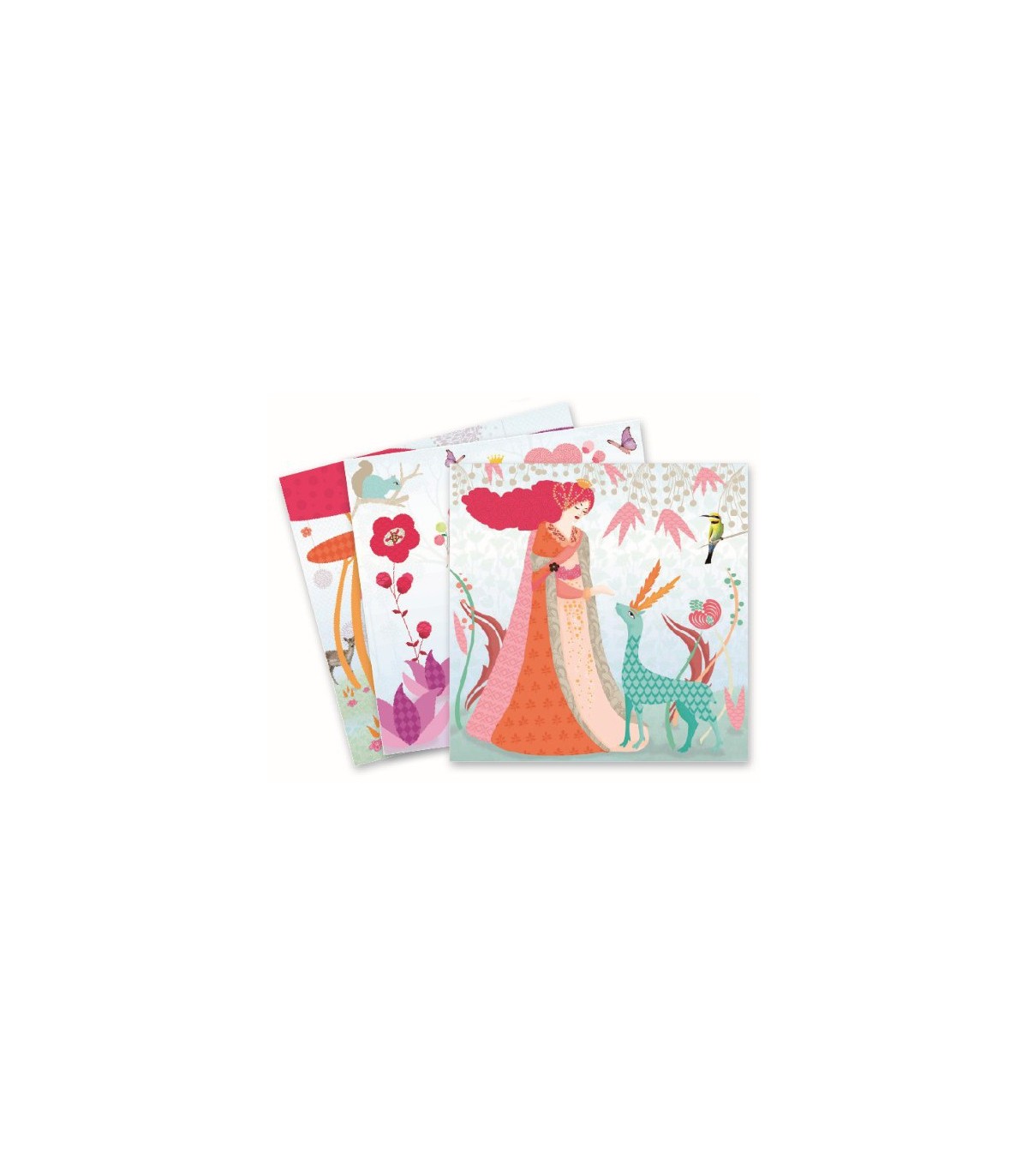 Contenido: 16 decoraciones para completar (4 modelos x 4, tamaño 20 x 20 cm), 12 hojas de motivos en relieve (tamaño 10 x 10 cm), 5 lápices de colores, 1 cuaderno de ejemplos coloreados.