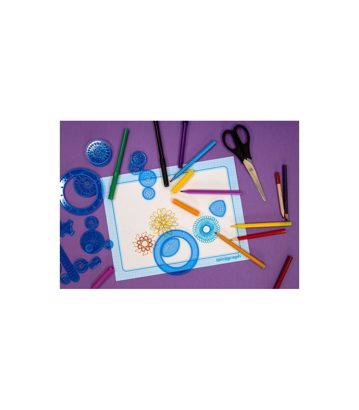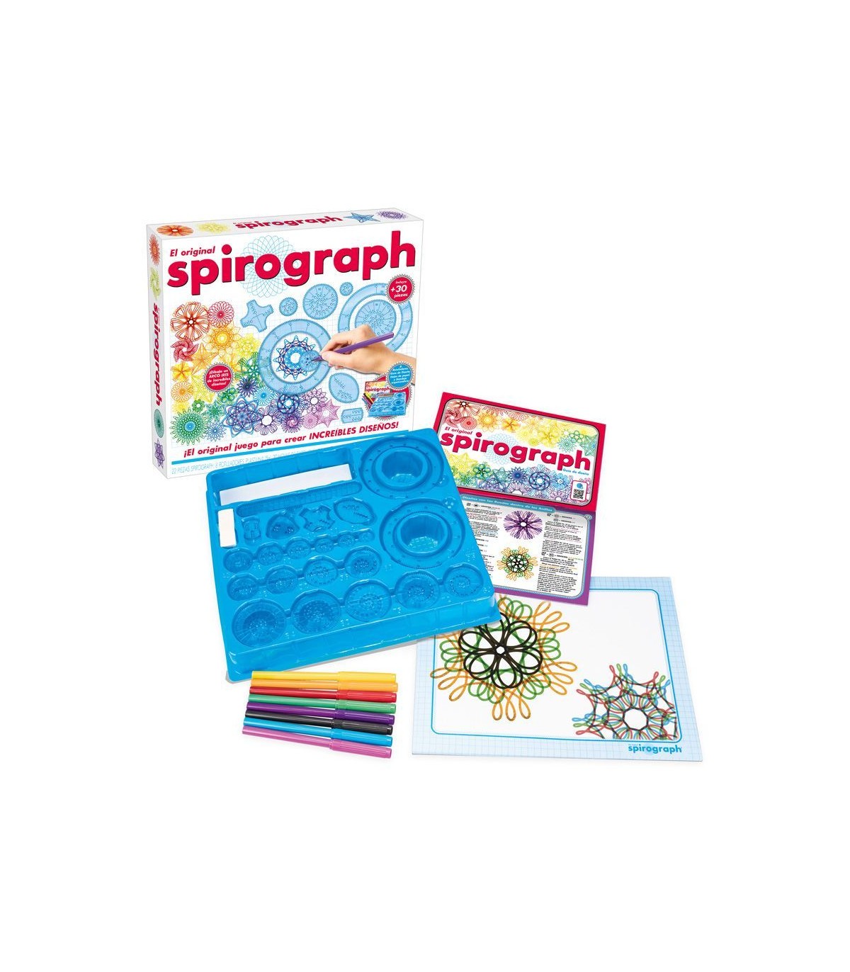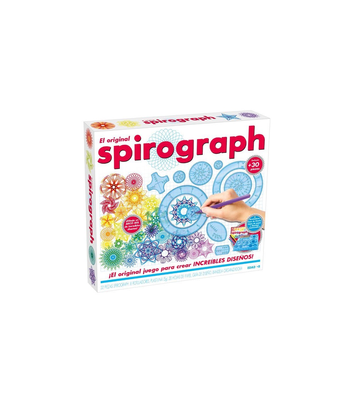 Spirograph viene acompañando a futuros artistas de todas las edades desde 1965. Con Spirograph se pueden crear alucinantes y complejos diseños. Fue creado por ingeniero mecánico; las distintas ruedas y anillos combinan los principios de las matemáticas con los del arte, inspirando a varias generaciones durante décadas. Spirograph ORIGINAL SET incluye más de 30 piezas y una bandeja para guardarlo todo de forma ordenada.