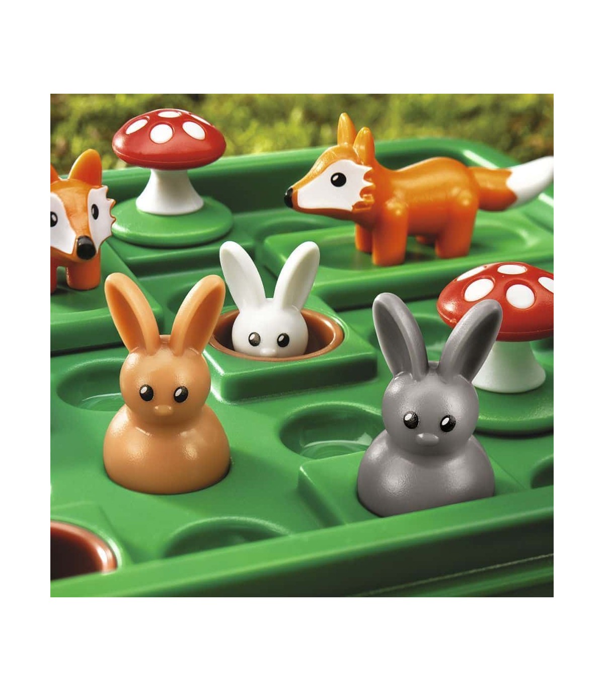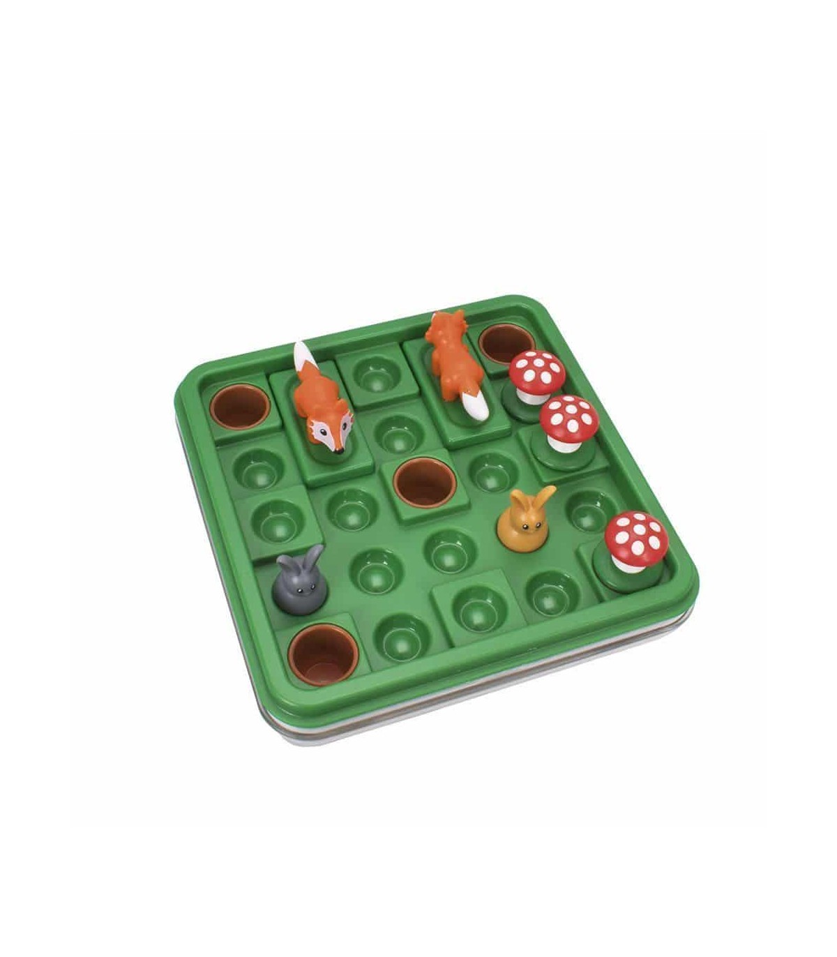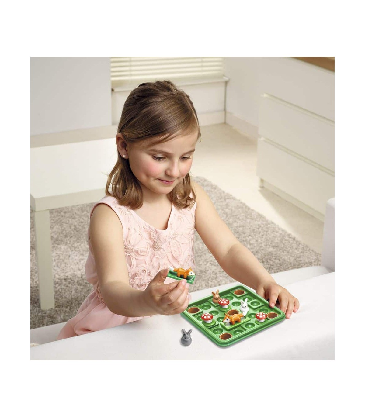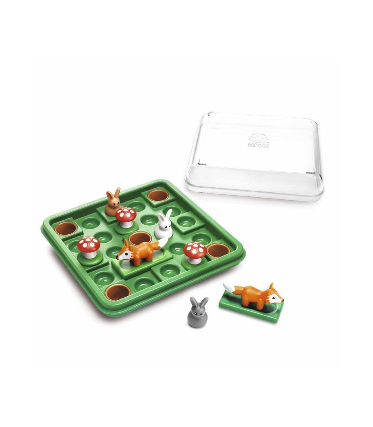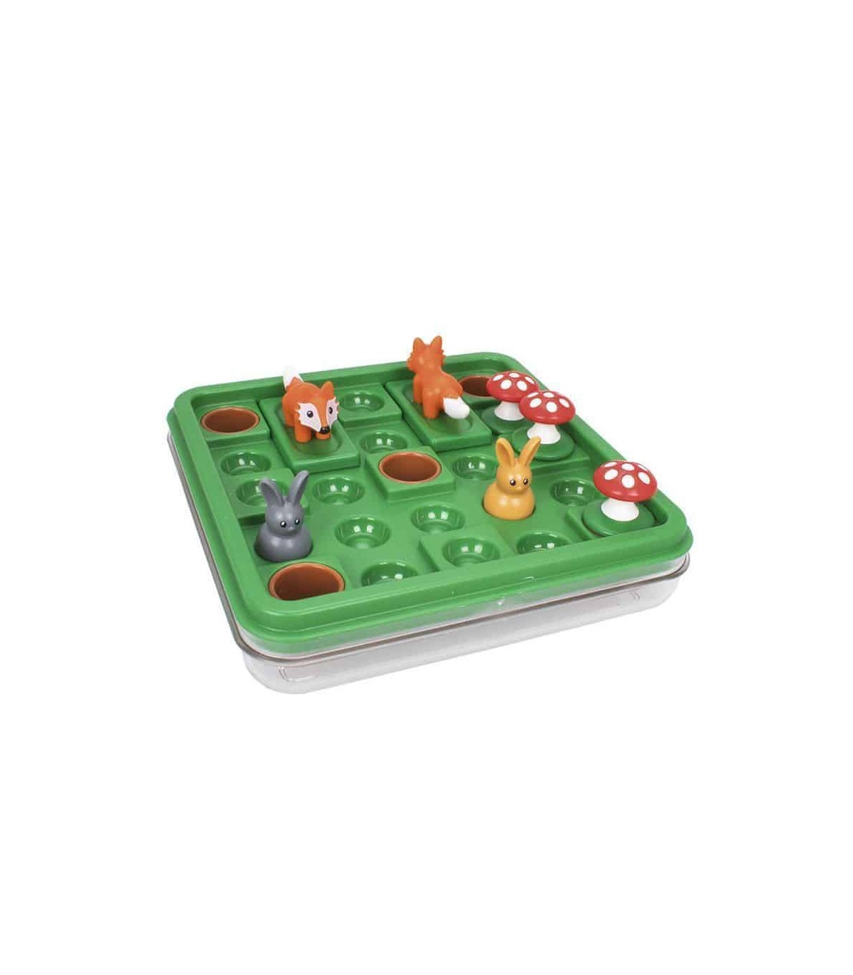 ¿Puedes ayudar a los conejos a saltar y esconderse en sus madrigueras? En Jumpin tendrás que tener cuidado con los zorros y obstáculos para conseguirlo. 60 retos a resolver, del más fácil al más difícil, en este tablero con tapa ideal para viajes.