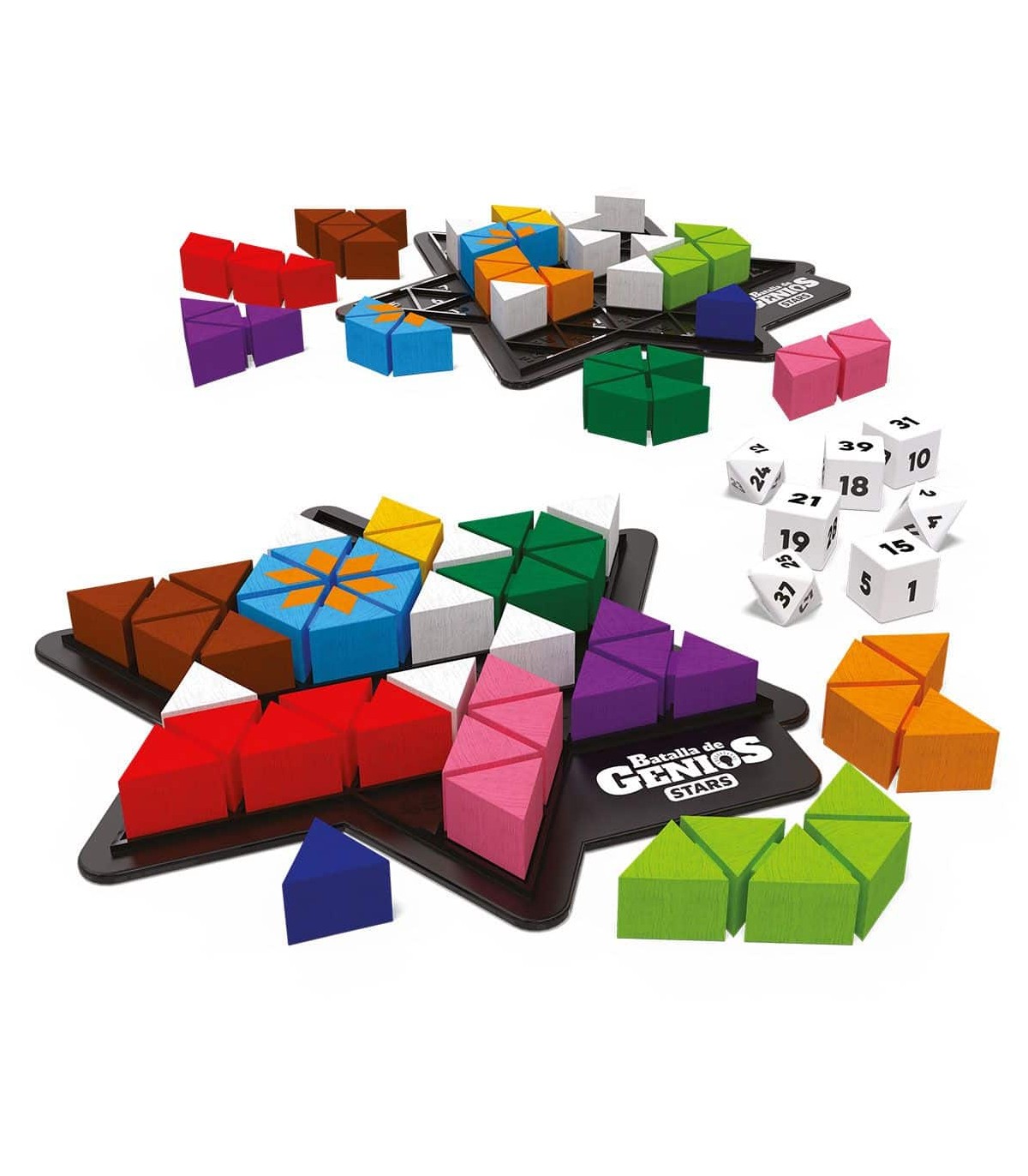 ¡Tira los dados y sé el más rápido colocando todas las piezas mientras evitas los bloqueadores!. Existen 165.888 combinaciones posibles. resuelve los retos y completa la estrella utilizando las once piezas de color. Puede que a veces parezca imposible, pero SIEMPRE habrá al menos una solución…