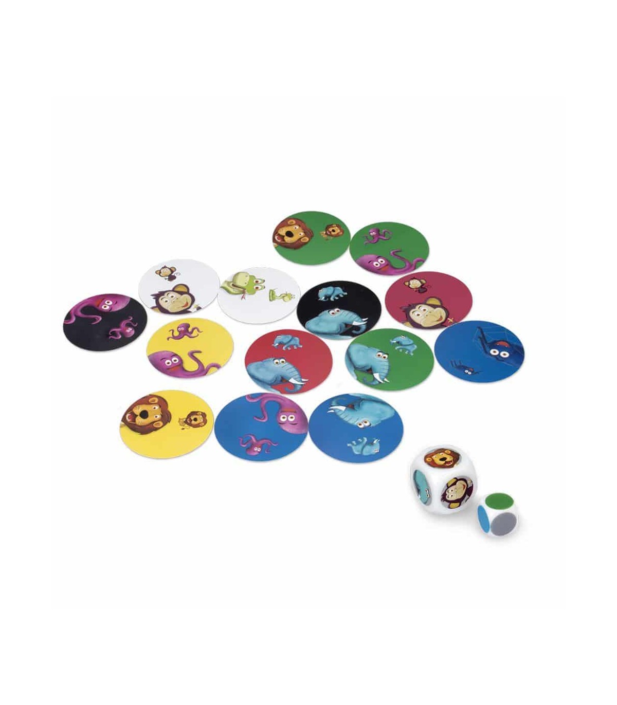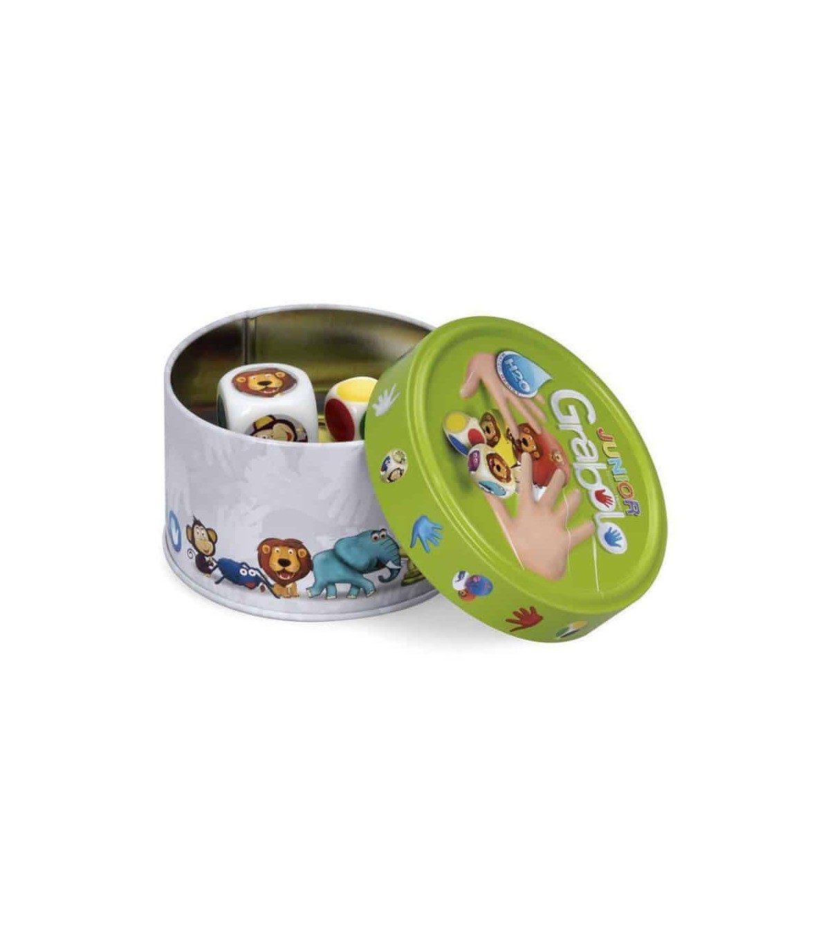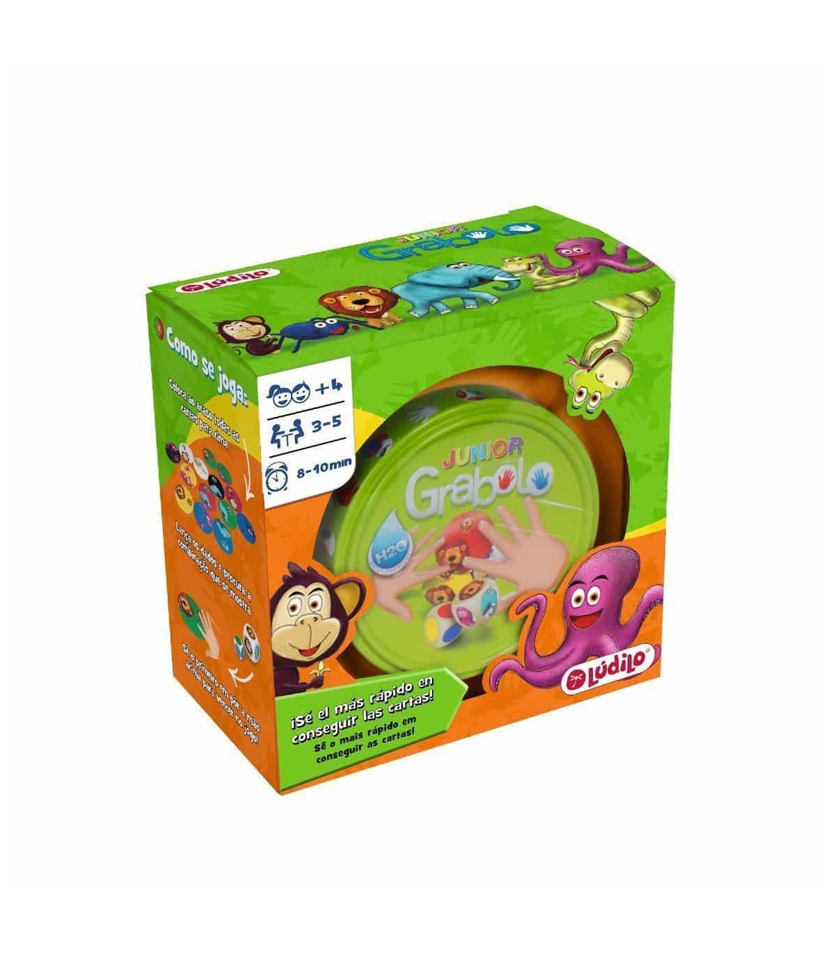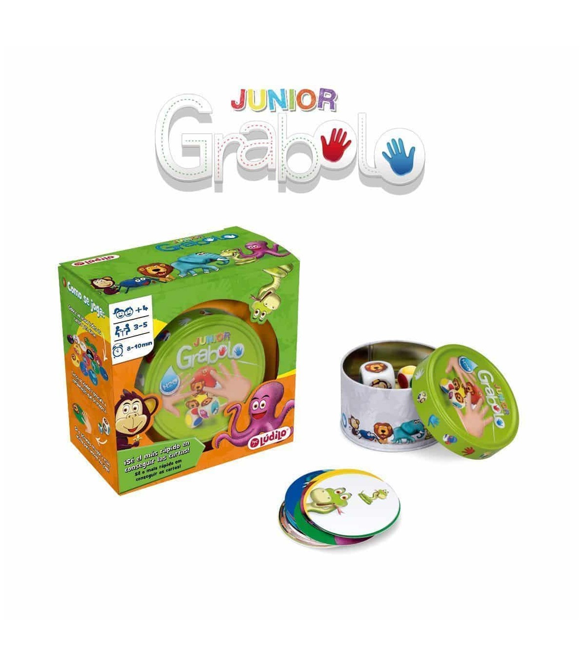 Con Grabolo Junior tienes que demostrar que tienes los mejores ojos y las manos más rápidas en la mesa. Los dados indican la combinación de color y animal que debes buscar. Intenta ser el primero en coger la carta correspondiente.