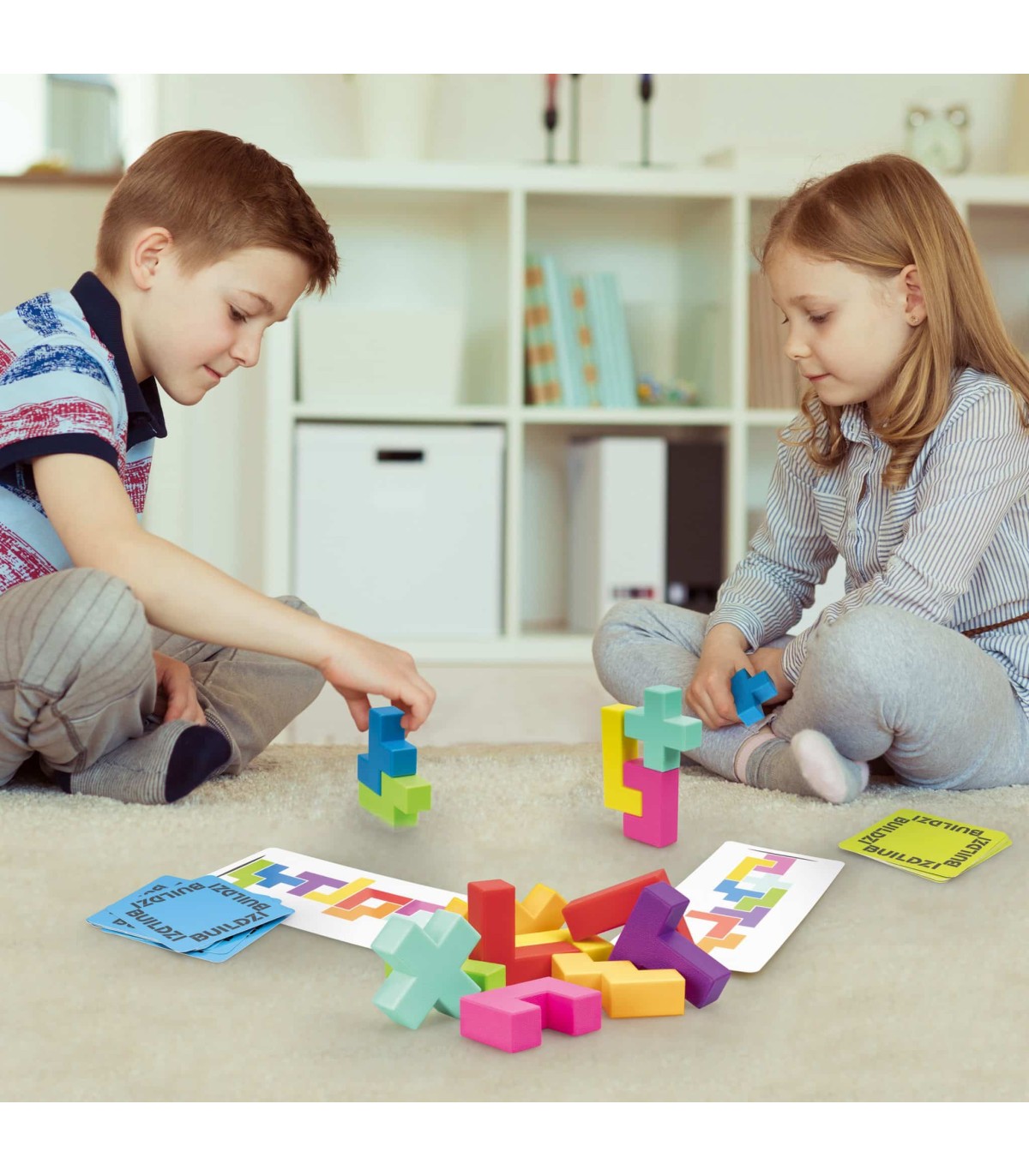 Construye tu torre y sé el más rápido para ganar pero, ¡cuidado no se derrumbe! Hay muchas formas de jugar a Buildzi, con sus tarjetas de torre reversibles o con sus tarjetas de bloque; cooperativo o competitivo. ¡Descubre qué forma te gusta más!