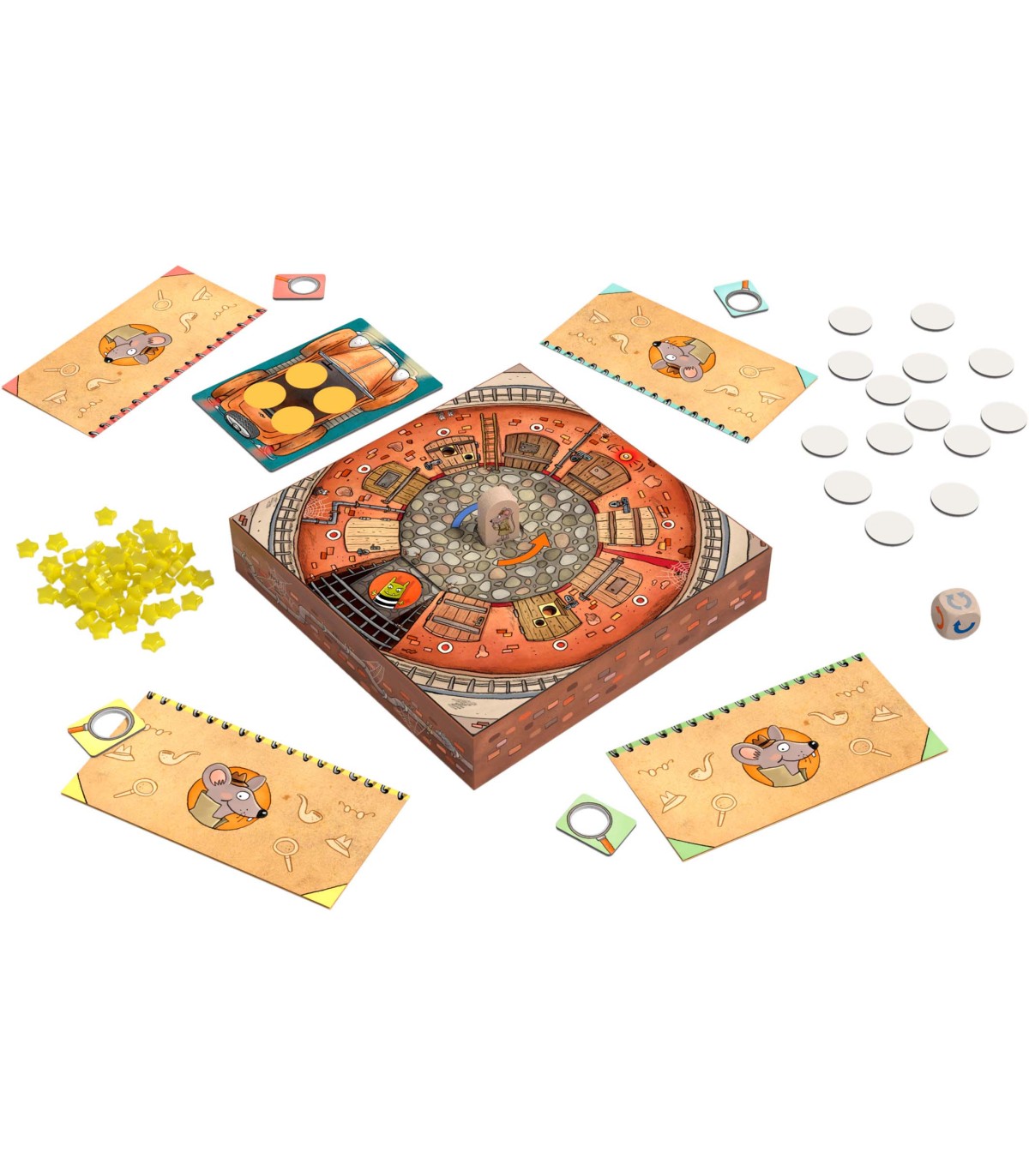 ¡Los malhechores pretenden fugarse! El comisario Ratónez les sigue la pista, pero necesita el olfato de sabueso de jugadores y jugadoras: ¿quién fue el último que estuvo en la celda donde se encuentra el túnel para la fuga? Si se acierta en el pronóstico, queda esclarecido el intento de fuga y se atrapa al malhechor. ¡Gana quien atrape al mayor número de fugados!