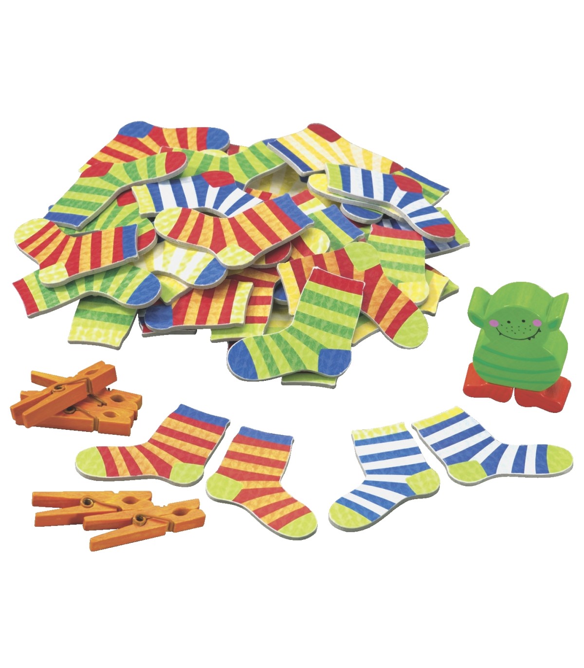¡El Monstruo de los Calcetines ha vuelto a hacer de las suyas en el armario! ¿Quién será capaz de encontrar las parejas de calcetines en medio de semejante desorden? Rápidamente los niños/as buscarán y buscarán todos/as a la vez en la montaña de calcetines. ¡Maldición, los calcetines son todos muy parecidos!