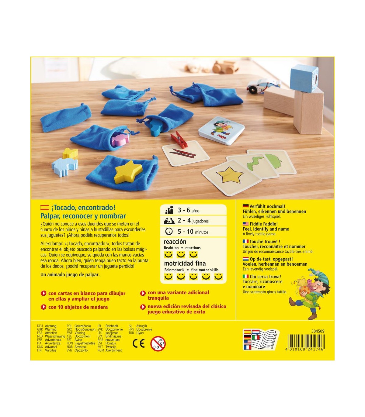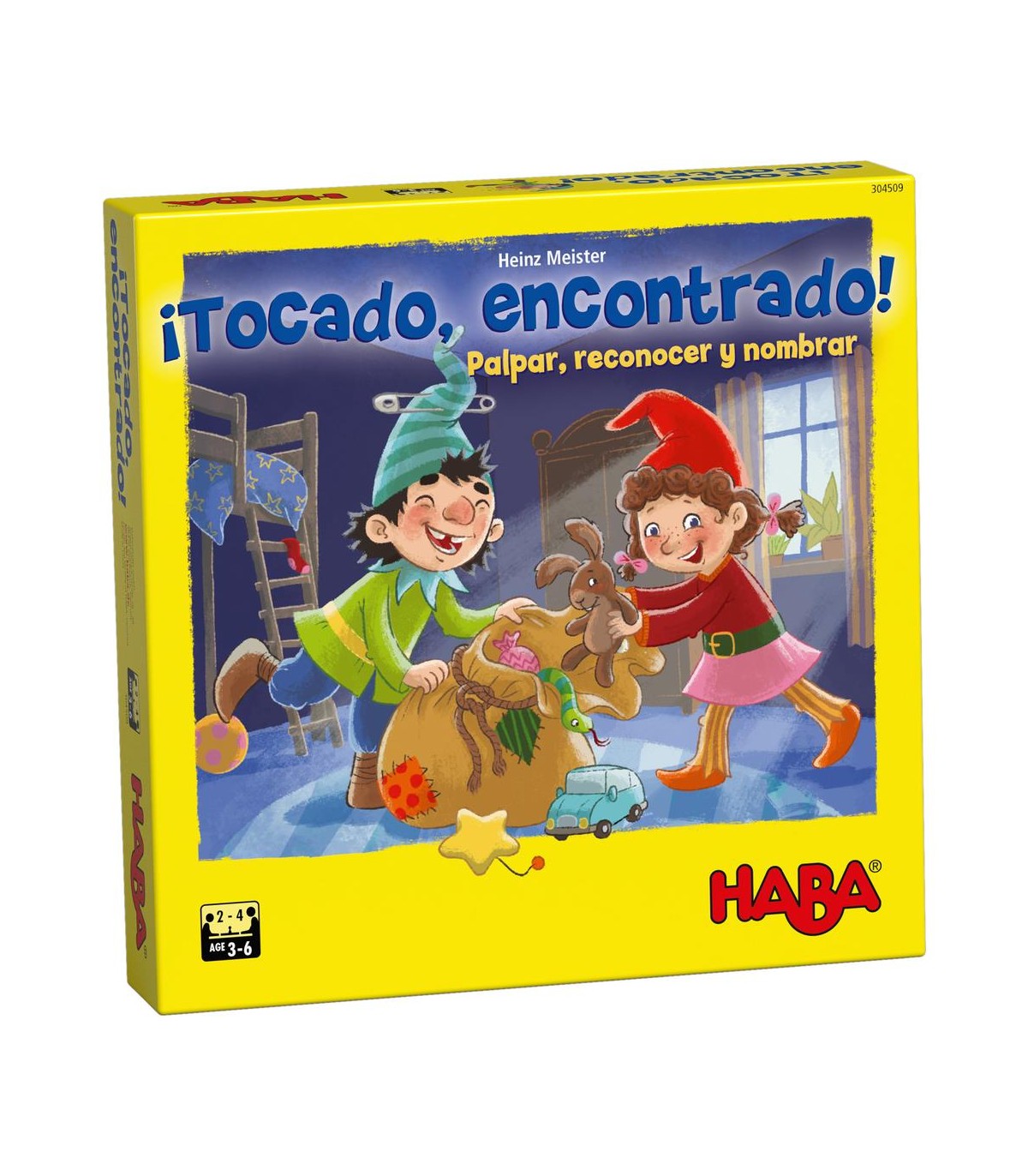 ¿Quién no conoce a esos duendes que se meten en el cuarto de los niños y niñas a hurtadillas para esconderles sus juguetes? ¡Ahora los jugadores pueden recuperarlos todos! Al exclamar: «¡Tocado, encontrado!», todos tratan de encontrar el objeto buscado palpando en las bolsas mágicas. Quien se equivoque, se queda con las manos vacías esa ronda. Ahora bien, quien tenga buen tacto en la punta de los dedos, ¡podrá recuperar un juguete perdido!