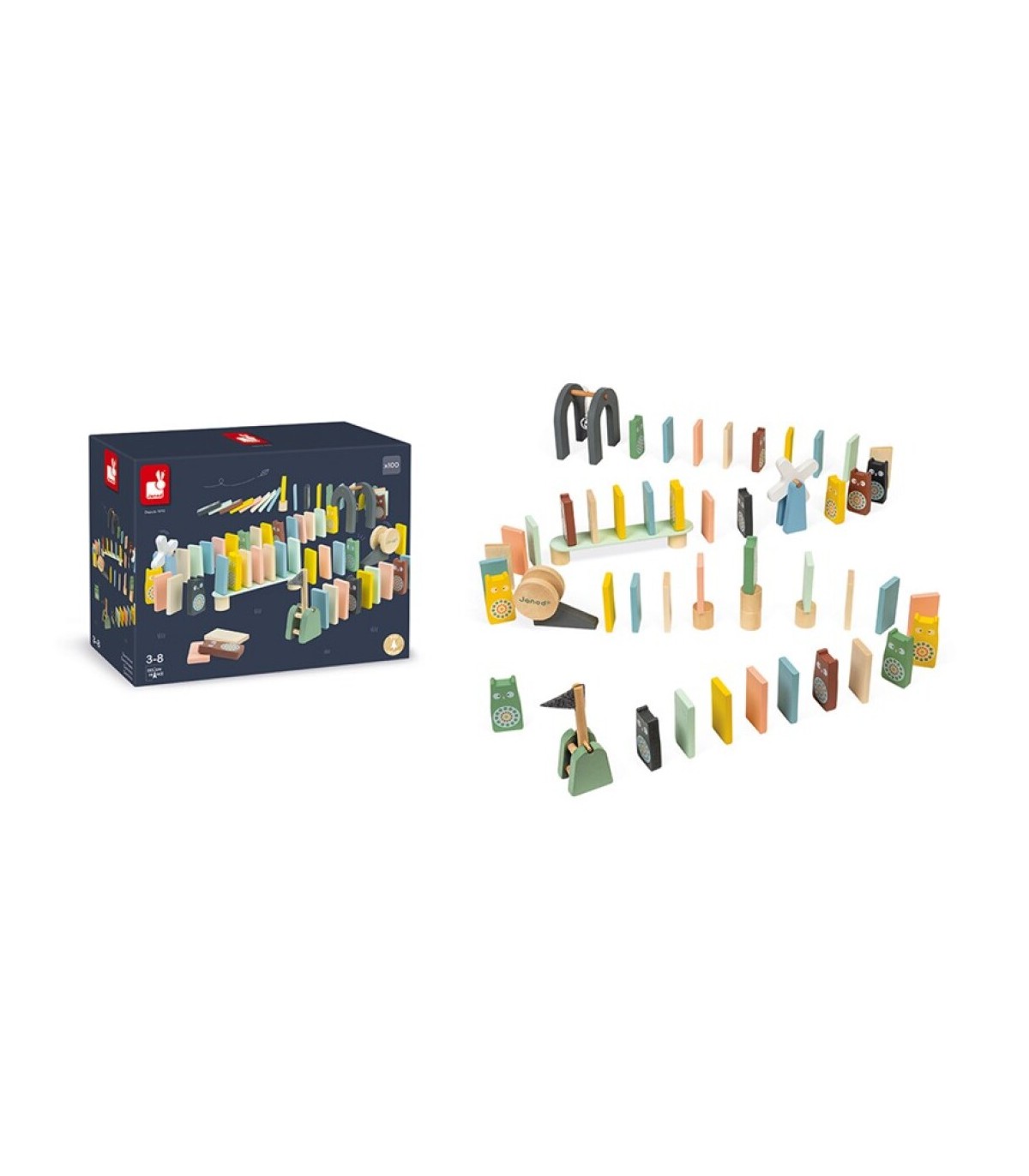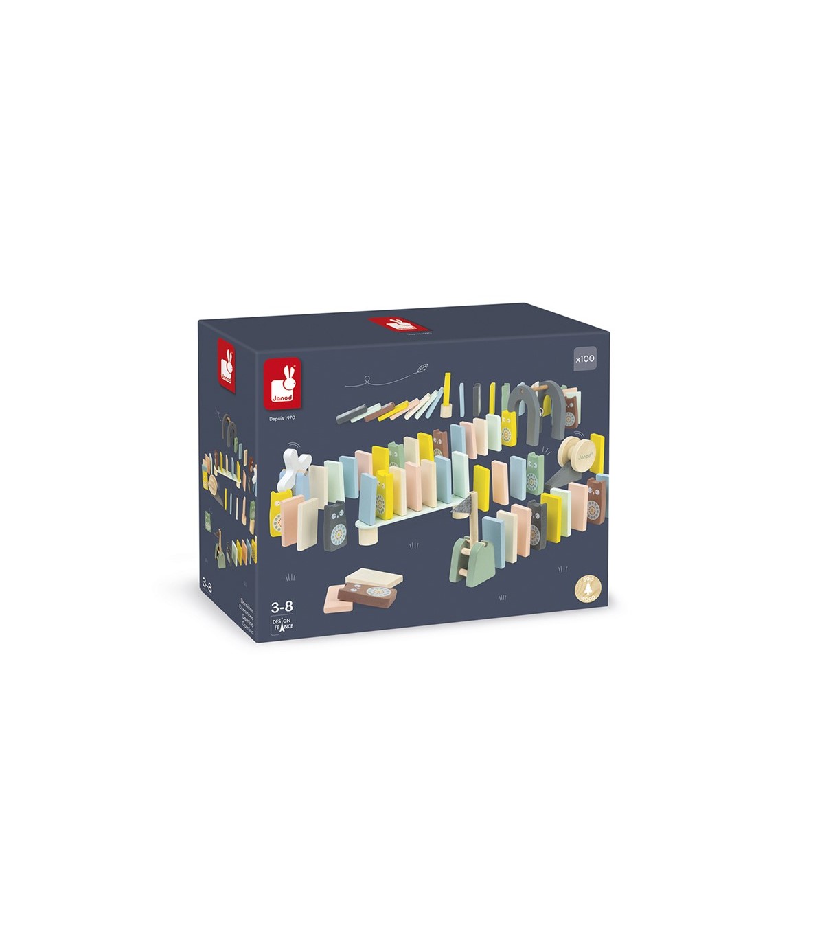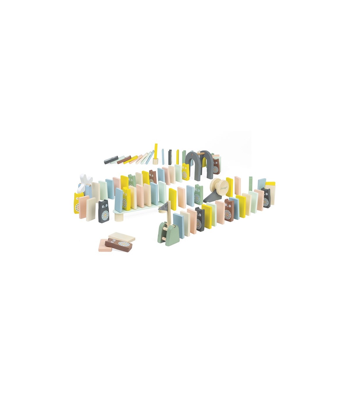 100 piezas para construir un recorrido para nuestros bonitos dominós búhos (pivotes, puente, molino, bandera, campana, pendiente y bobina). Ideal para desarrollar la destreza y la paciencia de su hijo(a) mientras se divierte. Una gama con colores delicados, inspirada en las tendencias actuales para acompañar los primeros aprendizajes de su hijo(a) con toda dulzura.