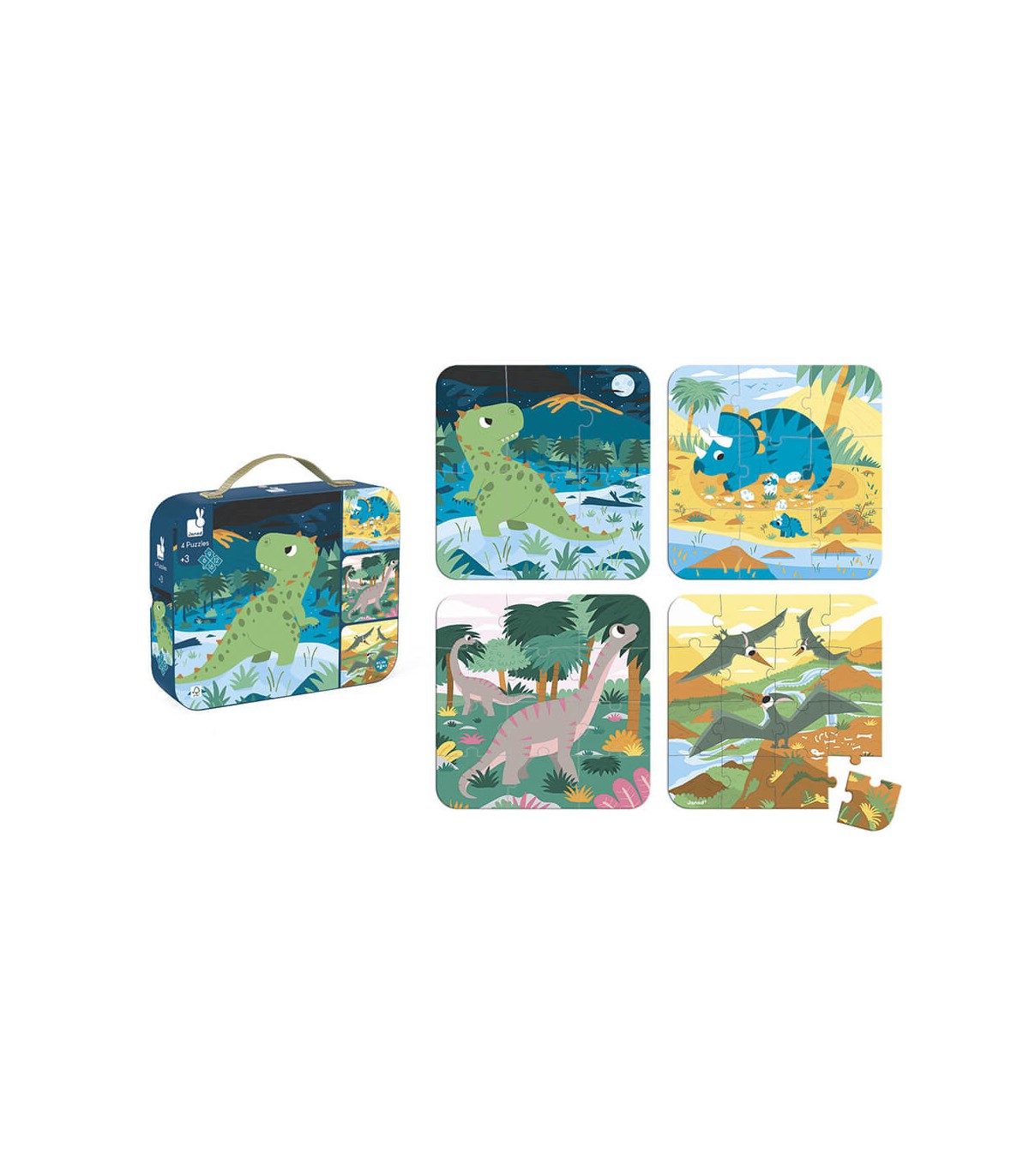 SET 4 PUZZLES EVOLUTIVOS DINOSAURIOS 6-9-12-16 PZAS.