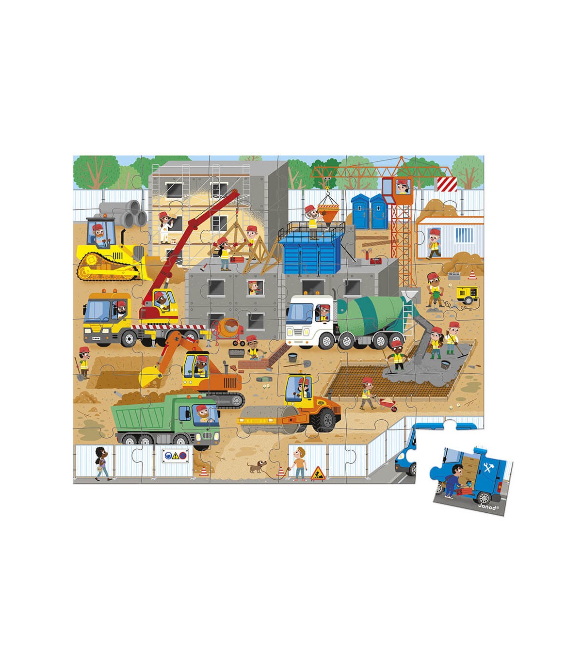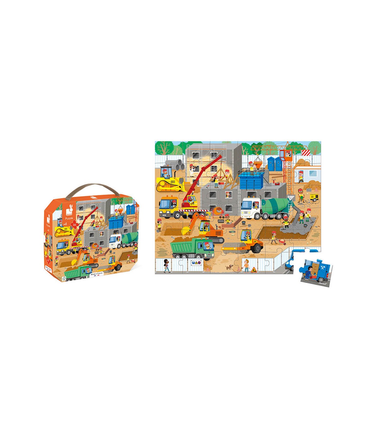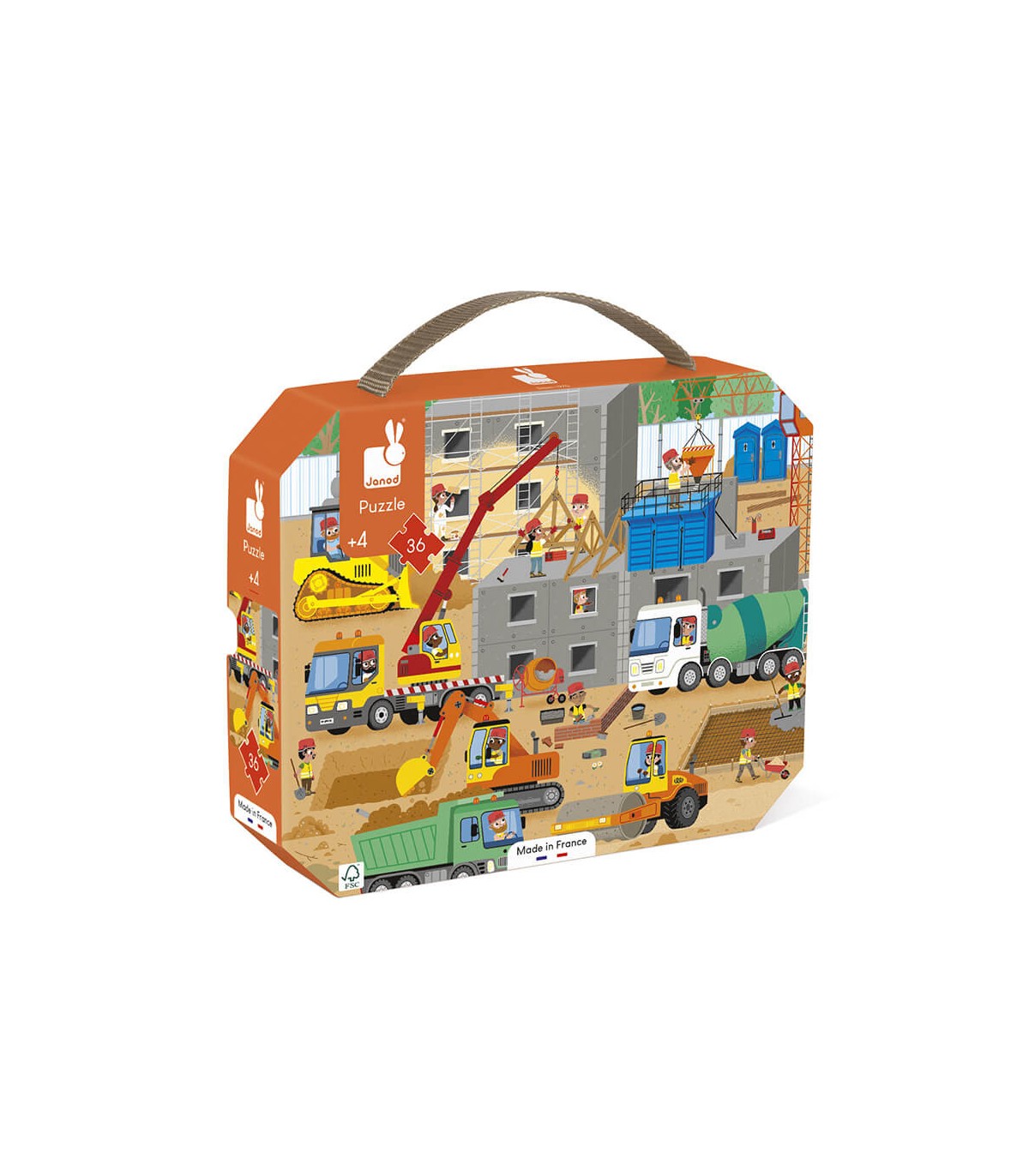 ¡Cuidado con la cabeza, que viene la grúa! ¡Todos a trabajar para terminar de construir la casa! El niño será el encargado de obra y el responsable de los acabados. Este precioso puzle de cartón de 36 piezas con un montón de detalles es ideal para conocer nuevos oficios. El niño ejercitará la memoria y la destreza con este bonito puzle de cartón de 36 piezas. Este puzle se transporta fácilmente gracias a su bonito maletín y a su asa de tela.