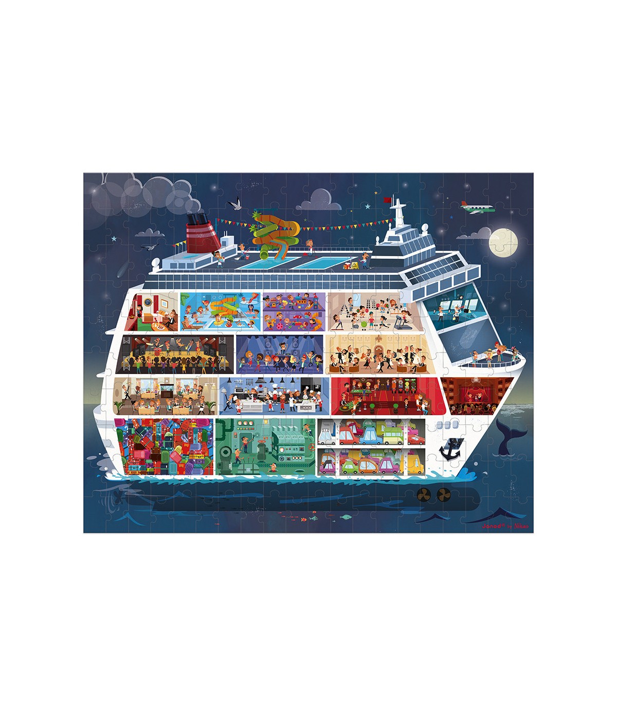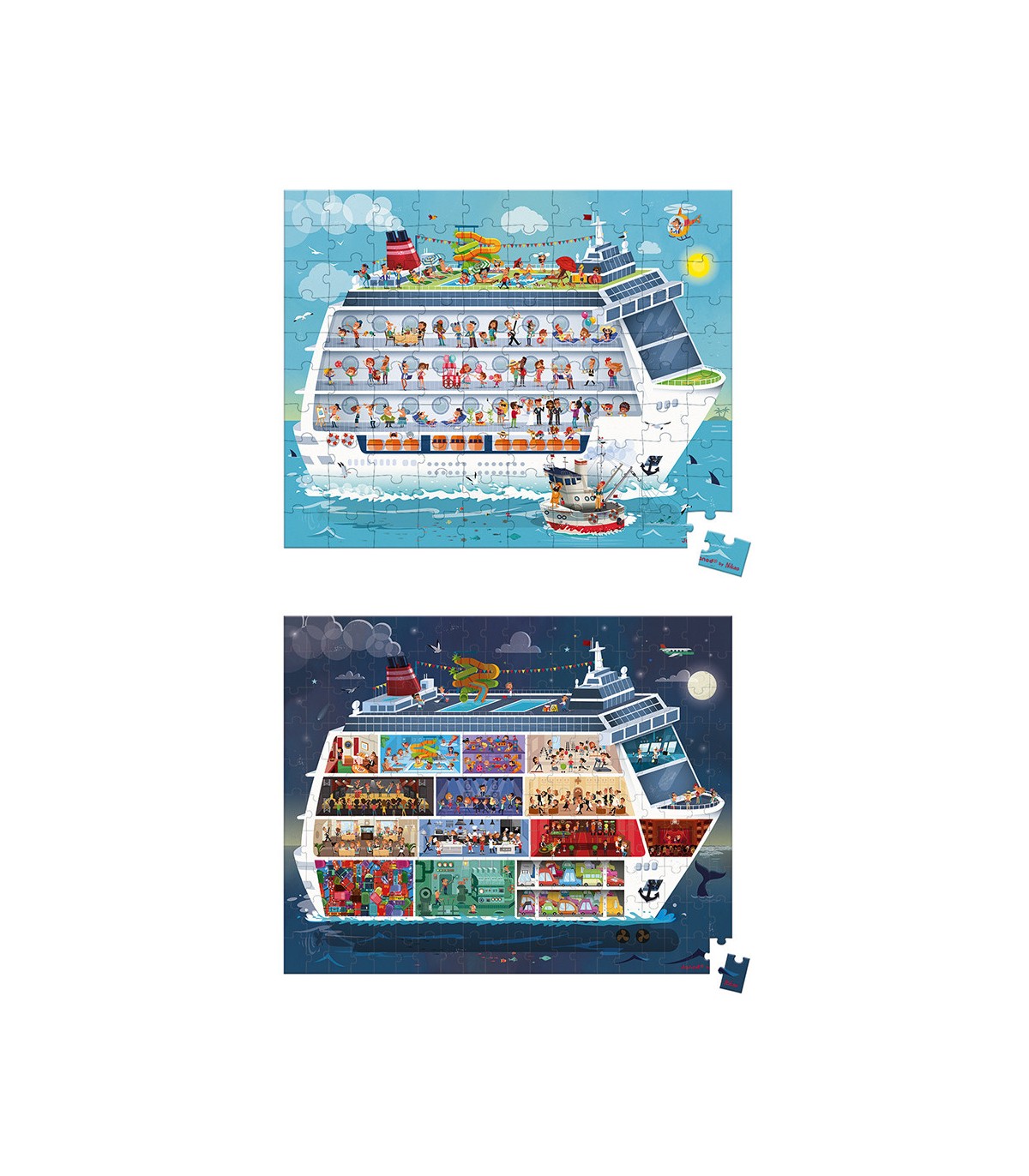 Magníficos puzles de cartón de 100 y 200 piezas con la temática del crucero. Dimensiones de cada puzle: 70 x 56 cm. El puzle grande (200 piezas) corresponde al barco de crucero por la noche; y el puzle pequeño (100 piezas), al barco de crucero de día. Modelos incluidos.