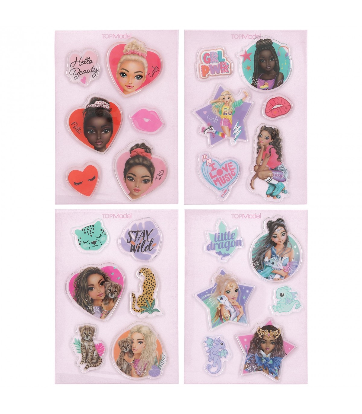 Estas pegatinas se adhieren perfectamente sobre superficies lisas tipo cristales, carpetas, etc. Glibbie-Sticker de TOPModel es superdivertido. Cada set contiene 6 stickers grandes de 8 colecciones de TOPModel diferentes. Se pueden crear diseños muy chulos en superficies lisas como cristales, tapas de carpetas, etc).