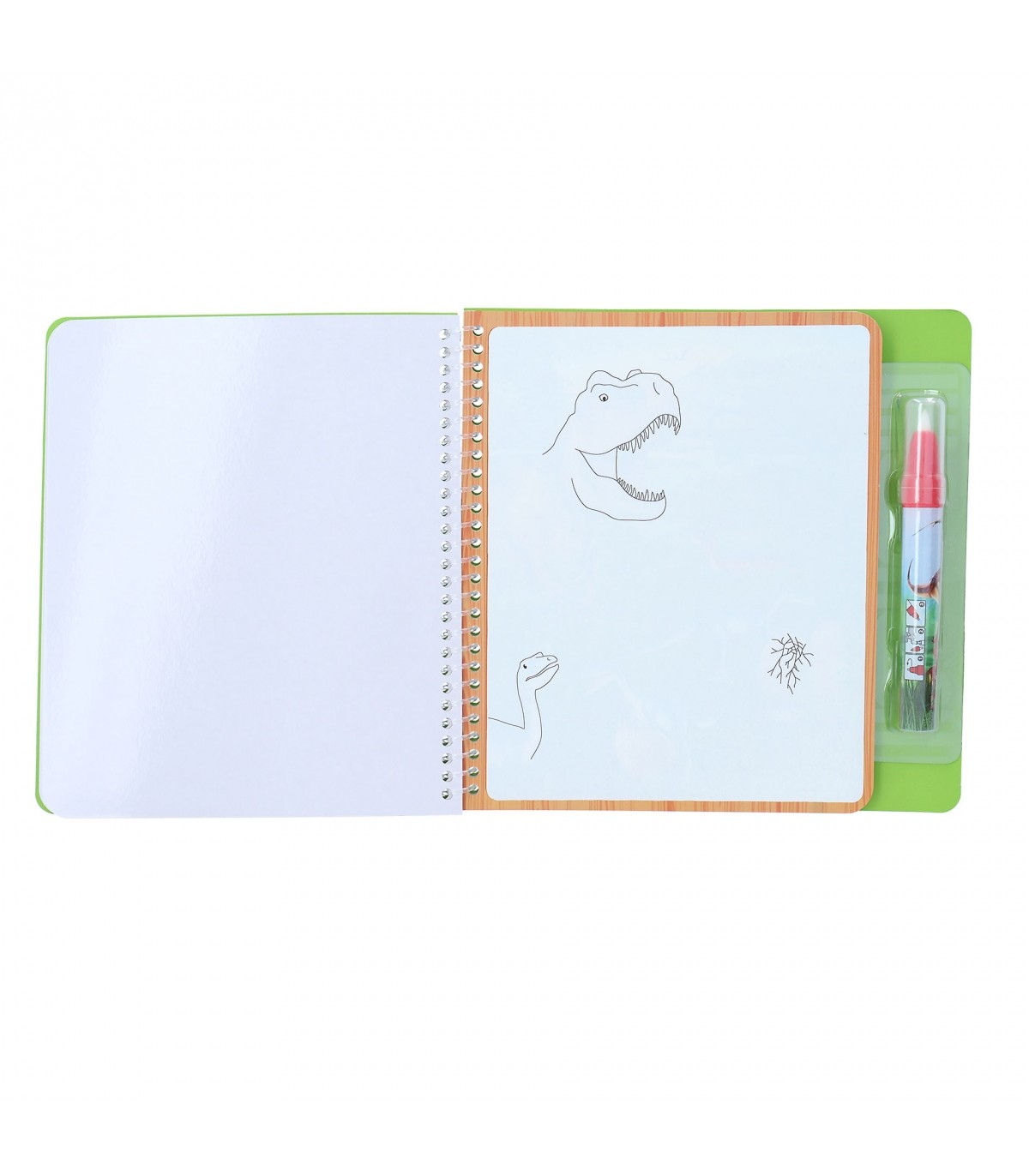 ¡Pinta dinosaurios de forma mágica! En las 5 páginas de cartón duro de este cuaderno de Dino World podrás hacer aflorar escenas chulísimas de la era de los dinosaurios al pintar con el rotulador de agua incluido (rellenable cuantas veces desees). Los dibujos desaparecen al secarse. ¡Para divertirse a lo grande pintando una y otra vez!