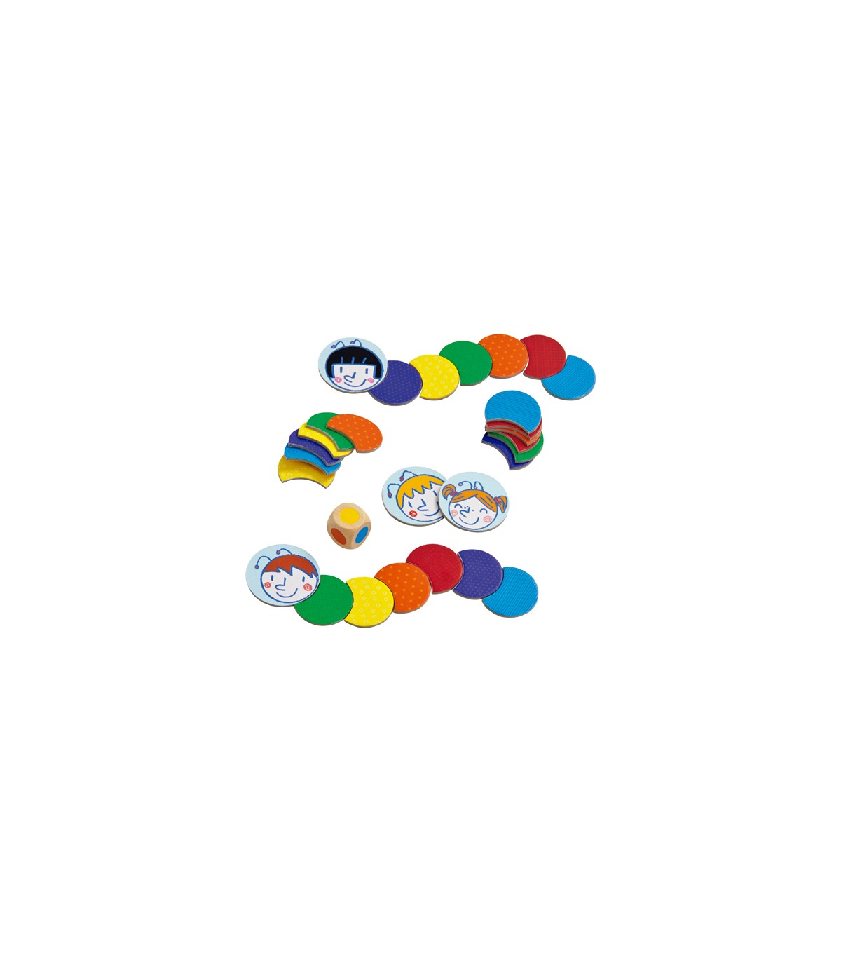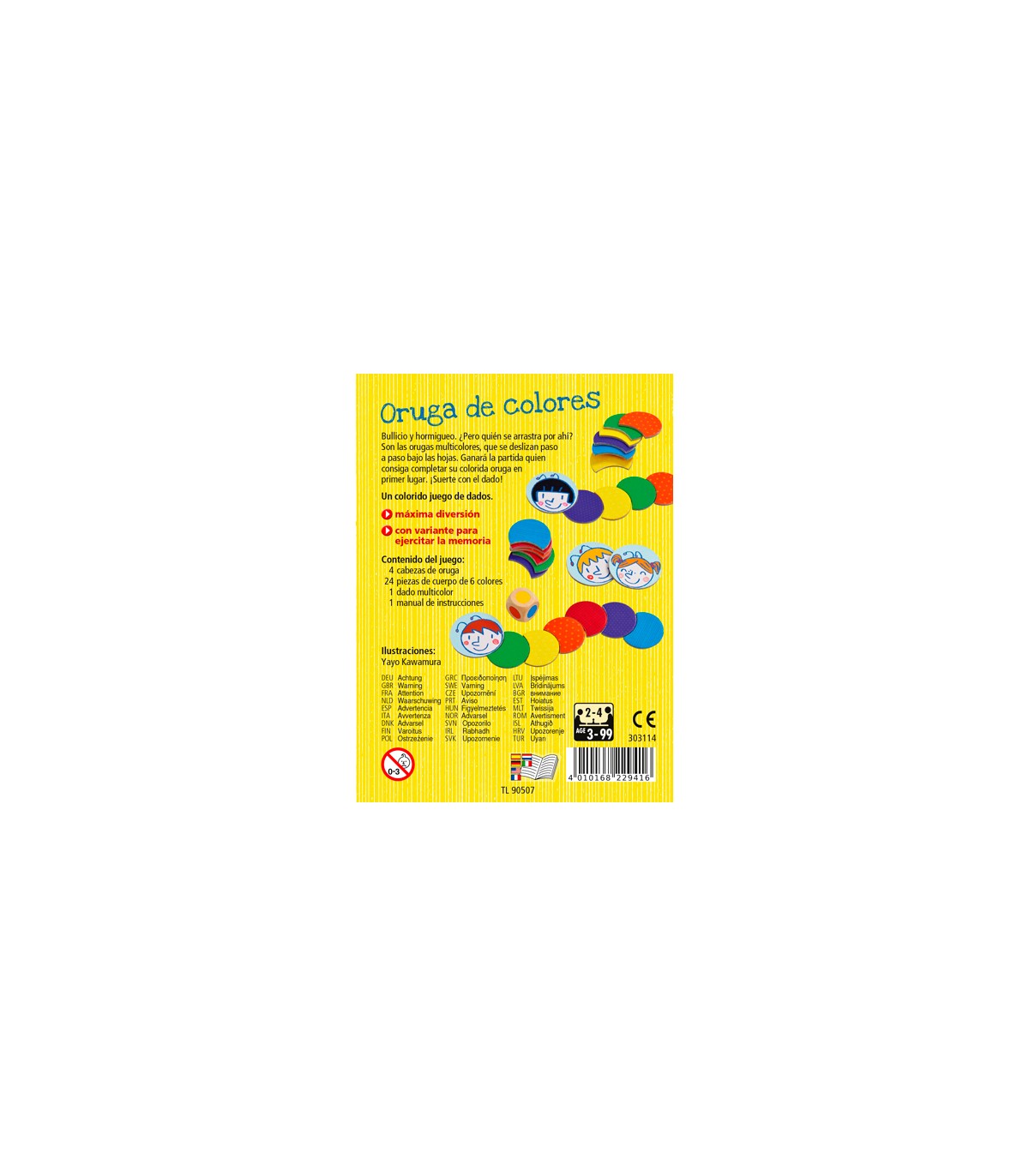Bullicio y hormigueo. ¿Pero quién se arrastra por ahí? Son las orugas multicolores, que se deslizan paso a paso bajo las hojas. Ganará el juego el primero/a que consiga tener la oruga completa con un poco de suerte con los dados.