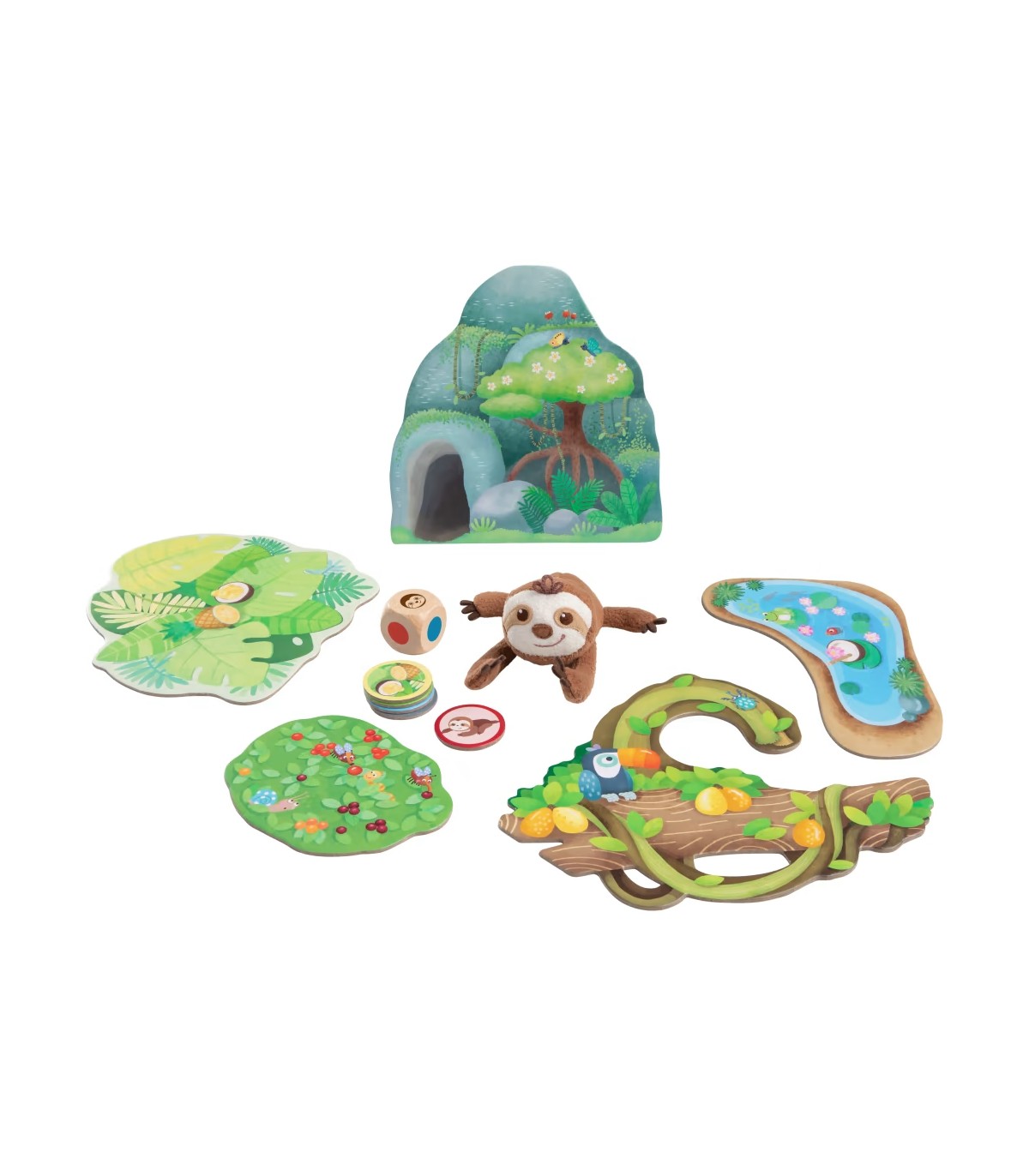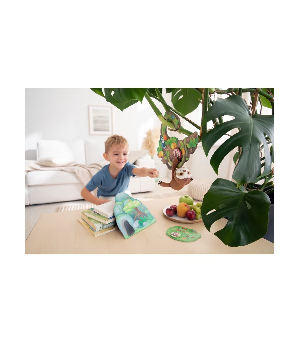 Rodeado de exuberantes plantas y deliciosos frutos, el Perezoso quiere dar rienda suelta a su curiosidad y explorar la selva. Normalmente es muy lento, pero a veces desaparece en un abrir y cerrar de ojos. En tres juegos llenos de movimiento, los jugadores/as deben seguirle la pista. Así se estimula la motricidad fina y gruesa, la capacidad de asociación y la imaginación. ¿Quién será el primero/a en encontrar al pequeño perezoso en uno de sus lugares favoritos? ¡Así se mezclan el juego y la acción!
