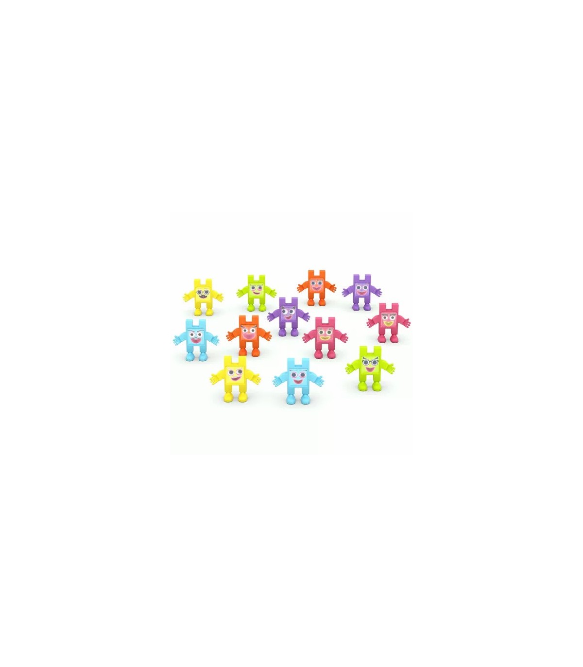 Todo niño sueña con su propia colección de figuras de juguete. Nuestras figuras son pequeñas para que su hijo pueda llevarlas de viaje. Un conjunto de doce figuras con caras divertidas es una caja de ideas para el juego creativo. Varios personajes que se asemejan a figuras de coleccionista pueden utilizarse para un juego creativo ilimitado. Cada figura tiene su propio carácter individual, vive sus propias aventuras y puede utilizarse para crear diversas historias. Con la ayuda de los bloques MELI, los niños pueden representar fácilmente una escena con un conductor de autobús escolar, aventuras de valientes vaqueros o inventar una historia de los habitantes de un misterioso castillo. La imaginación ilimitada de los niños les ayudará a crear sus propios escenarios de juego.