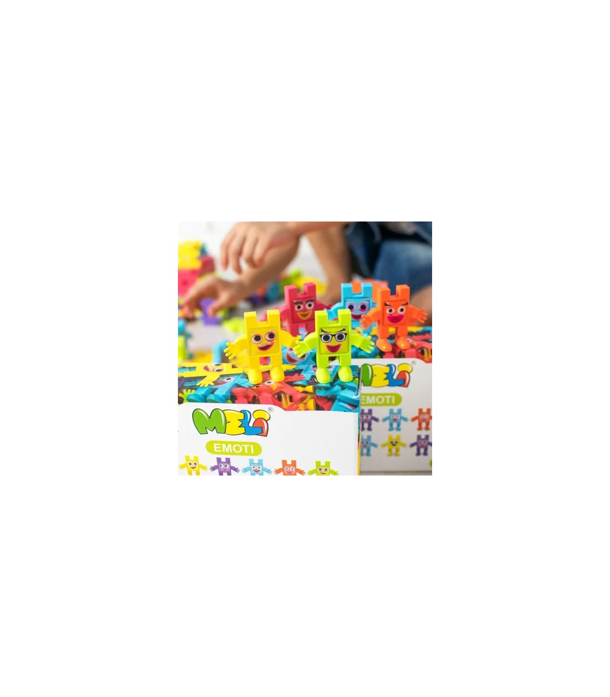Las figuras están hechas del mismo plástico que los bloques MELI y sus caras están hechas de pegatinas de gel ligeramente perfiladas que dan una impresión 3D. Su hijo puede poner las caras en cualquier figura por sí mismo. Los pequeños y simpáticos personajes tienen formas parecidas a los ya conocidos bloques MELI. Están fabricados con materiales aptos para niños con certificado de seguridad y no contienen sustancias nocivas. Esta colección será una fuente de innumerables inspiraciones para el juego creativo de su hijo.