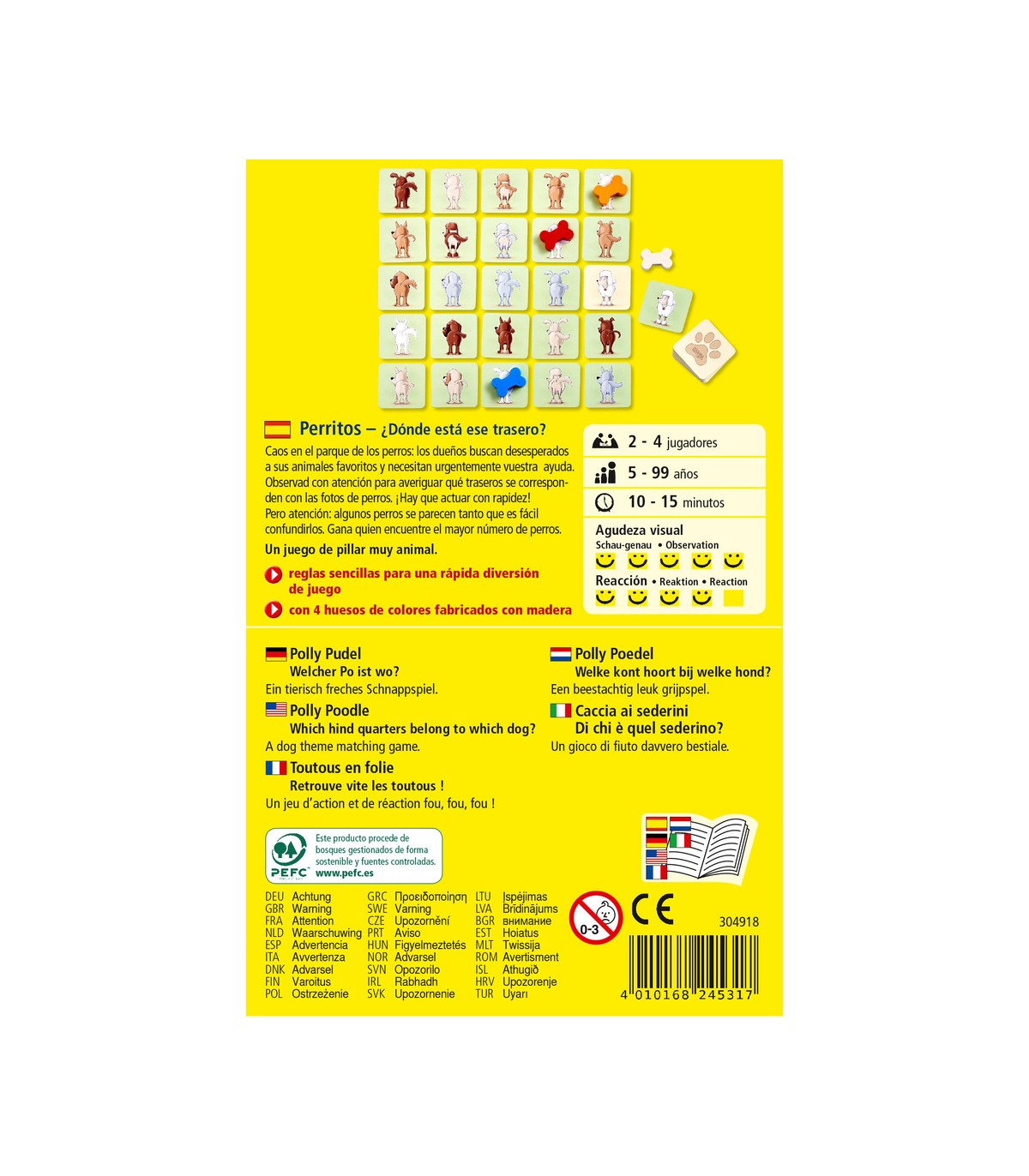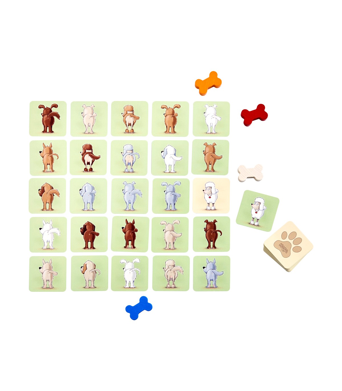 En el parque de los perros, los dueños buscan desesperados a sus animales favoritos y necesitan urgentemente la ayuda de los jugadores, los cuales tienen que observar las fotos atentamente para averiguar qué traseros de perro se corresponden con las fotos de los mismos. ¡Hay que actuar con rapidez! Pero atención: algunos perros se parecen tanto, que es fácil confundirlos. Gana quien encuentre el mayor número de perros.
