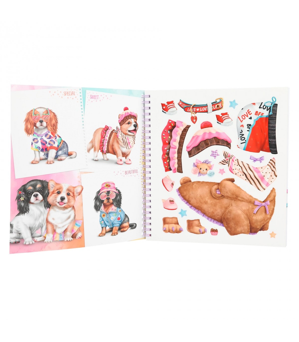 ¡Guau, guau! El cuaderno para dibujar y colorear Doggy de TOPModel encuadernado en gusanillo tiene más de 40 imágenes de monísimos perritos esperando a que las colorees y les pongas complementos. Para ello incluye 3 hojas de pegatinas.