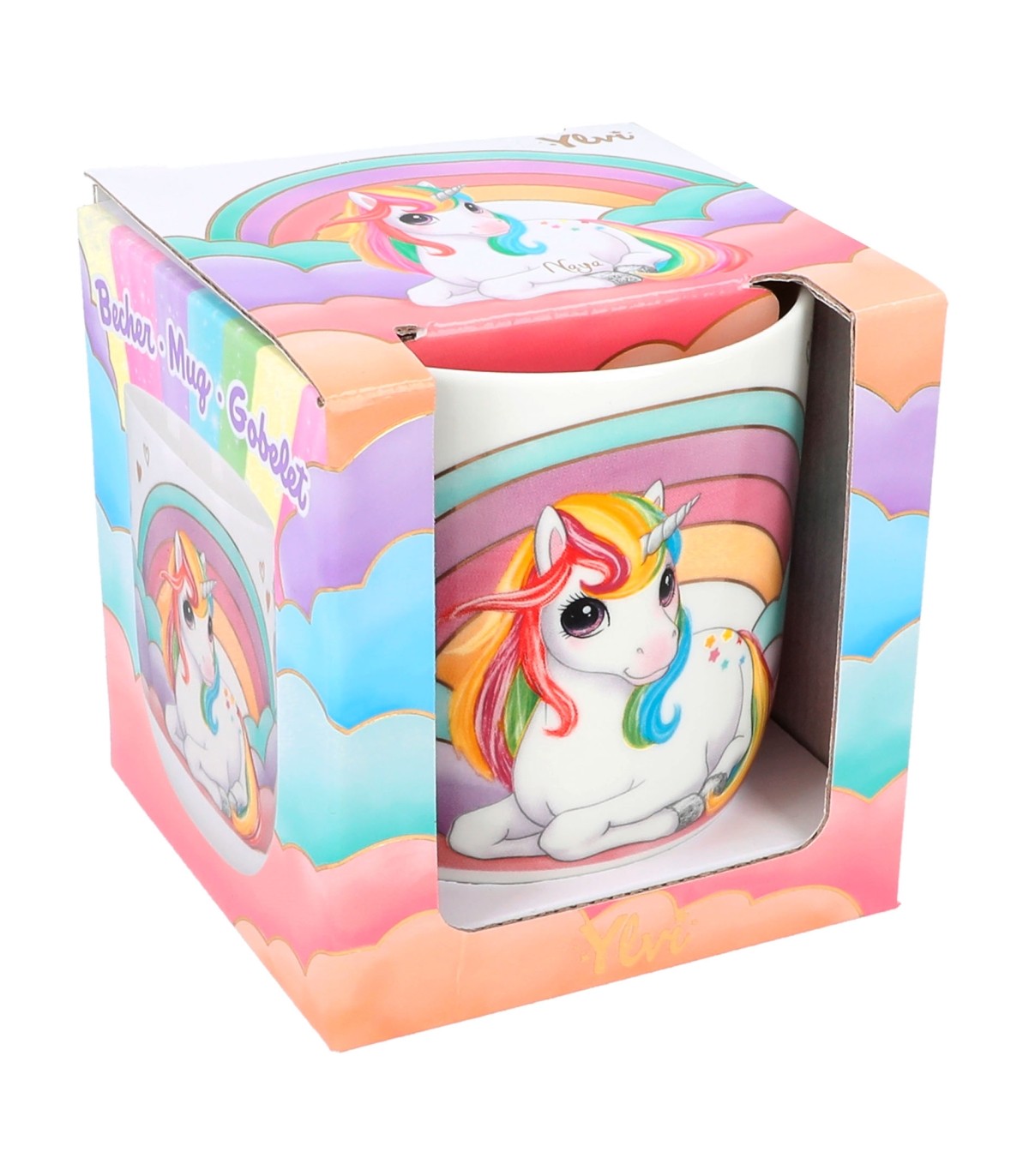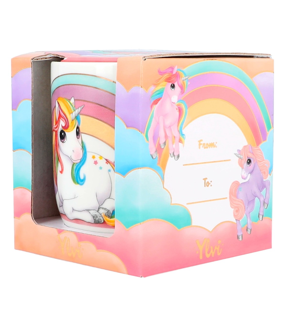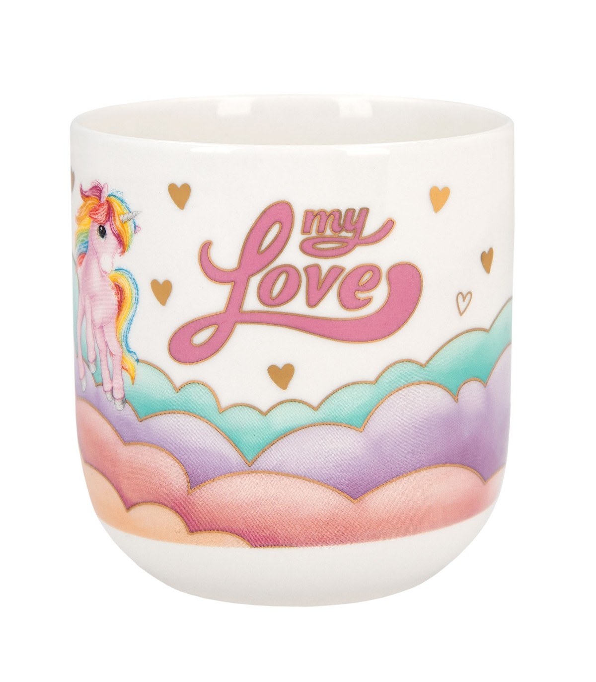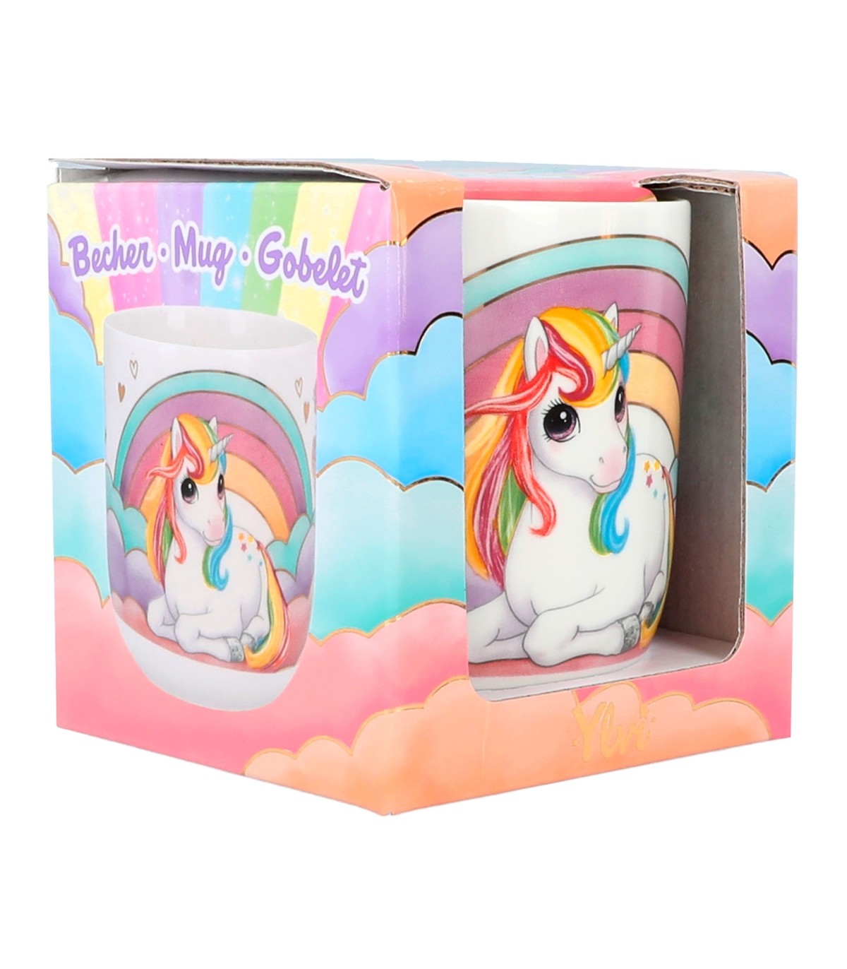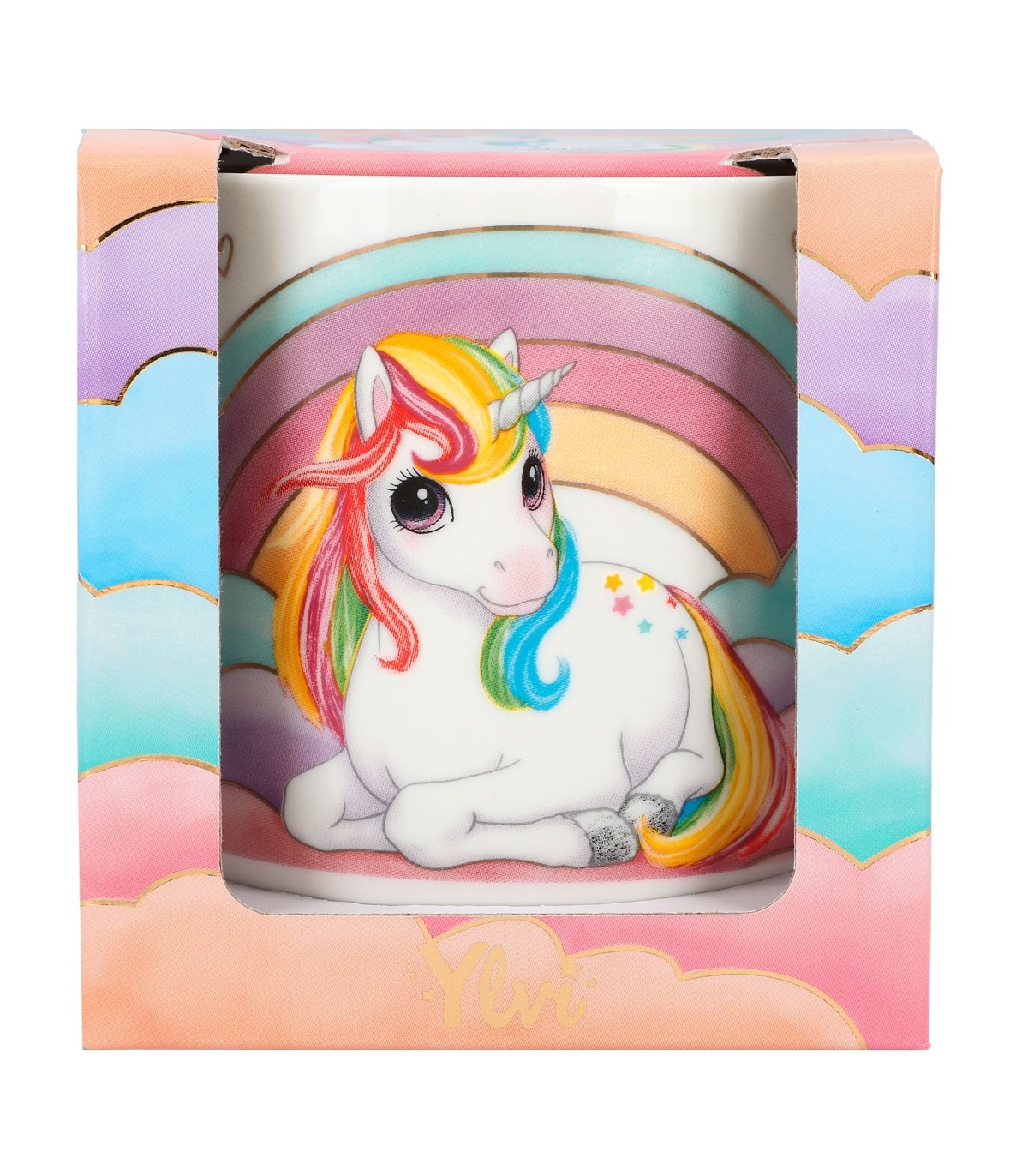 Puede convertirse en la taza favorita o en portalápices. La taza de porcelana de Ylvi sin asa está decorada con imágenes muy trabajadas del unicornio Naya, un arcoíris multicolor, nubes esponjosas y la palabra "Love". La taza no es apta para su uso en microondas debido a los elementos decorativos dorados. Se recomienda no lavar en lavaplatos. Capacidad: 250 ml; material: porcelana china new bone.