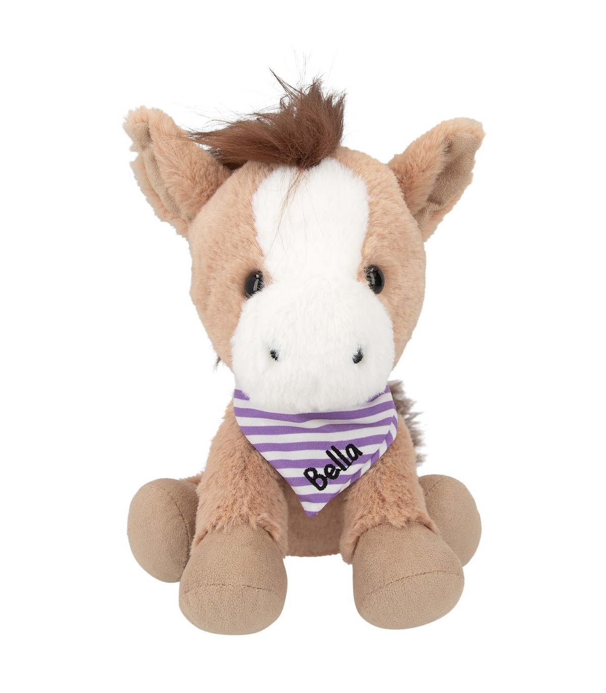 Monísimo y muy suavecito. El caballo de peluche Bella de la colección Snukis en marrón claro con melena marrón tiene unos bonitos ojos negros de mirada leal y lleva al cuello un pañuelo con su nombre bordado. Material: poliéster 100 por 100.