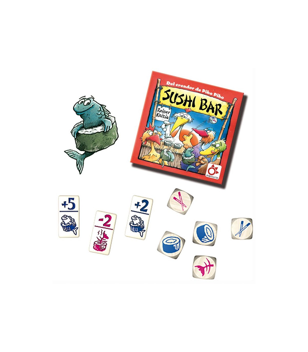 Consigue las mejores piezas de sushi lanzando los dados. Pero, donde hay pescado, ¡hay espinas! Y estas hay que separarlas del sushi, para que los pollos no se atraganten... Por supuesto, las espinas pequeñas se digieren mejor que las grandes... El jugador con más puntos al final del juego gana. Del creador de Piko Piko, un juego de dados con más estrategia de la que piensas...