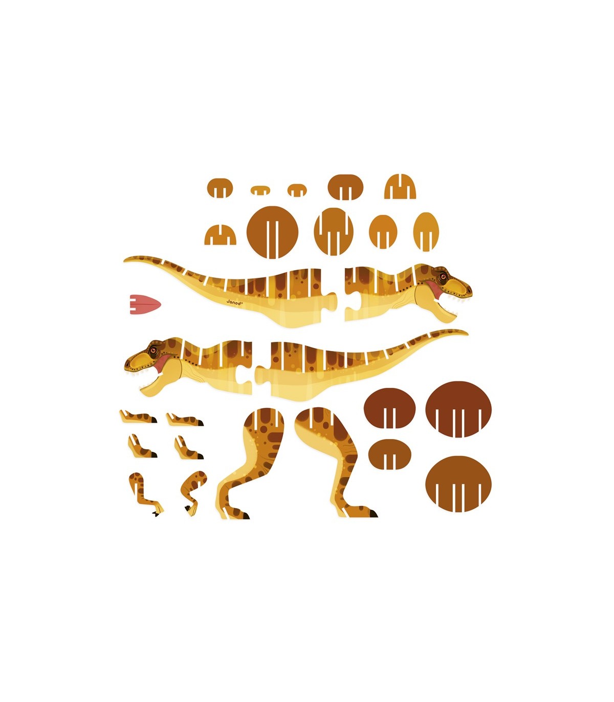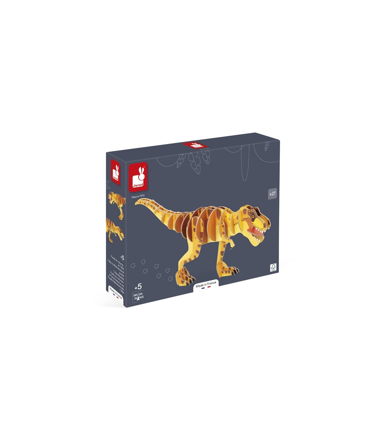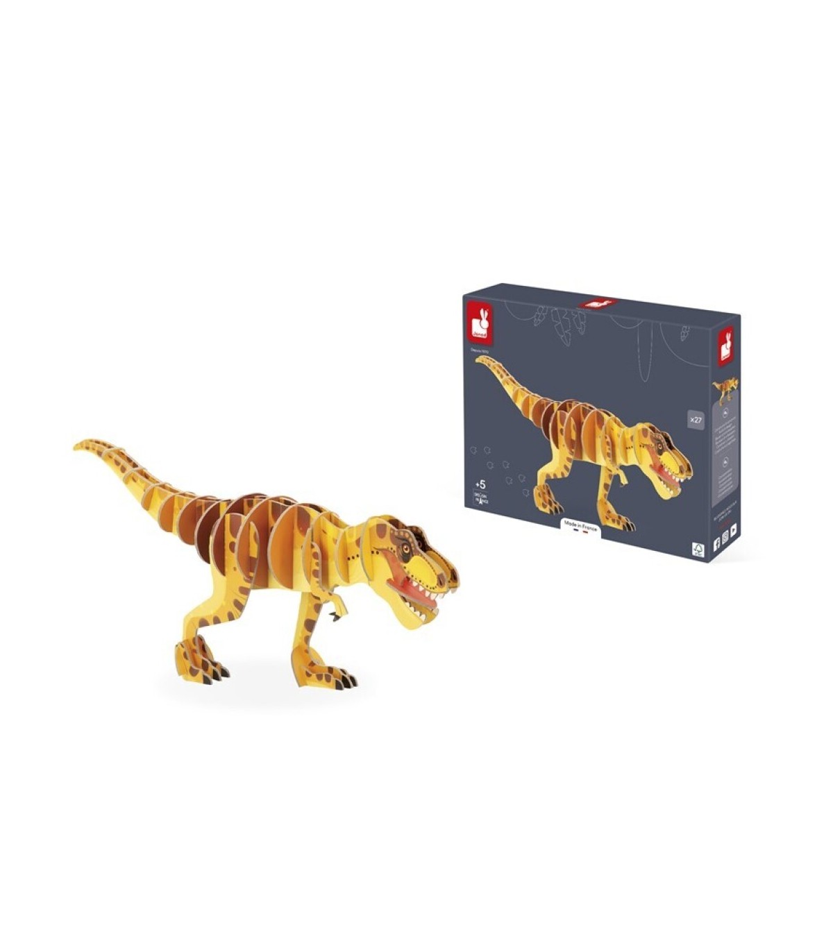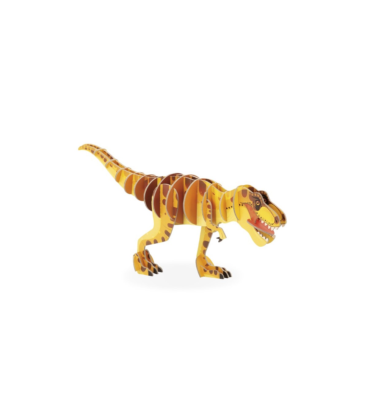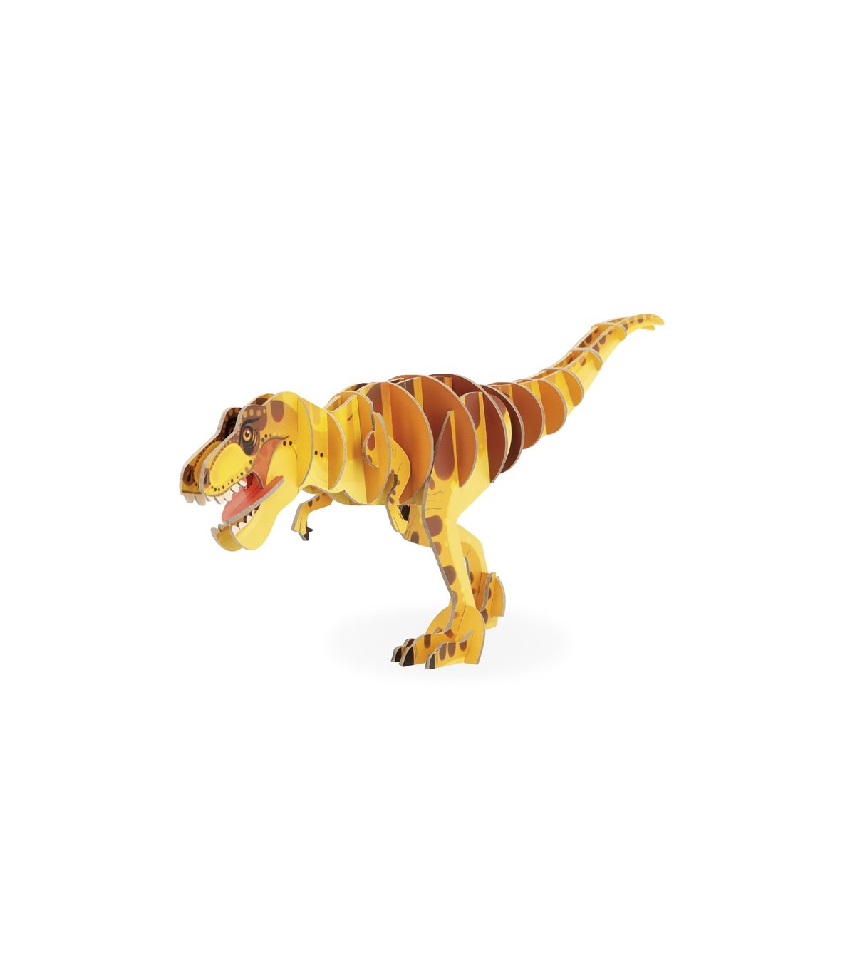 ¿Qué puede ser más impresionante que dar vida al más feroz de todos los dinosaurios con un puzle 3D? ¡Las 27 piezas de cartón impreso por ambos lados se montan para reconstruir un magnífico T-Rex en bonitos tonos amarillos! Esta actividad, juego de construcción y a la vez puzle en tres dimensiones, es ideal para niños a partir de 5 años.