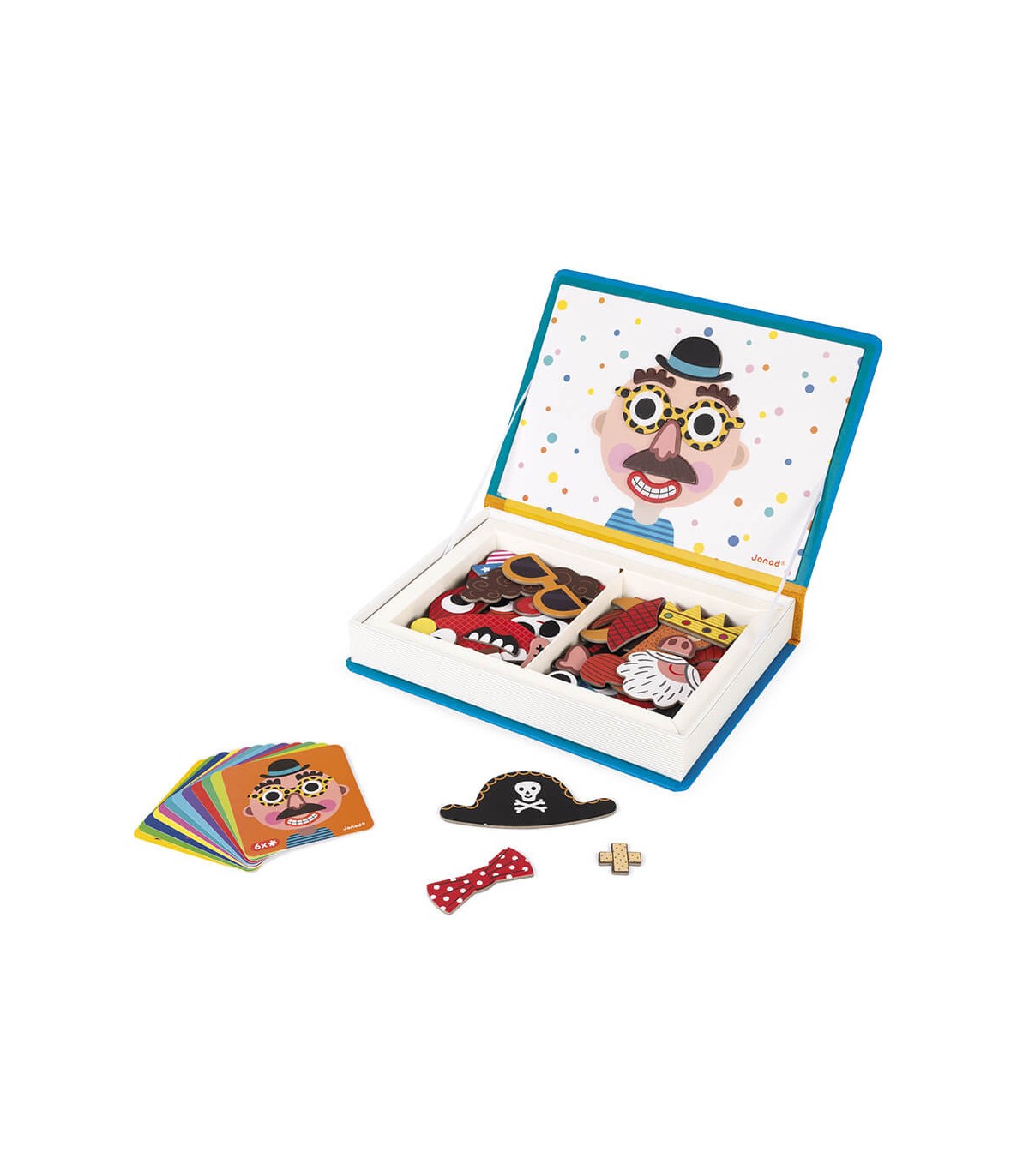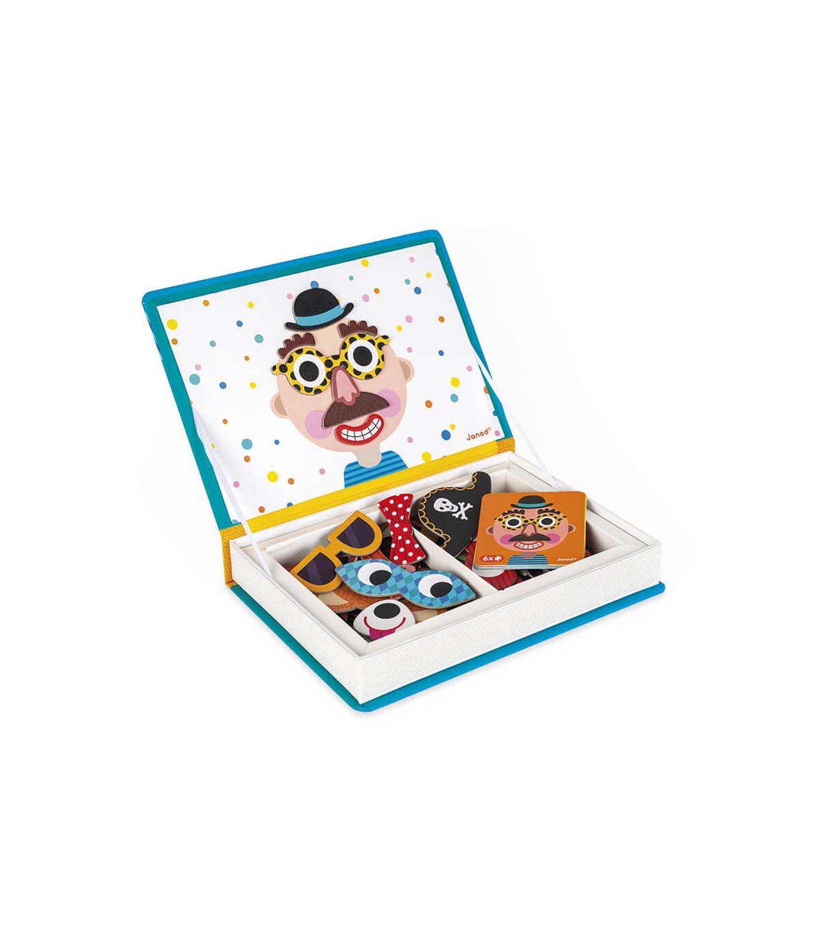 Descubre los Magnéti'books: unos juegos educativos y divertidos, fáciles de manipular y llevar a todas partes para niños a partir de 3 años. El principio es sencillo: crear divertidas caras o personajes basándose en alguno de los modelos que se incluyen o dando rienda suelta a su imaginación. Un sombrero, unas gafas… con los 70 imanes y las 12 tarjetas de ejemplo incluidas, ¡todas las combinaciones son posibles!