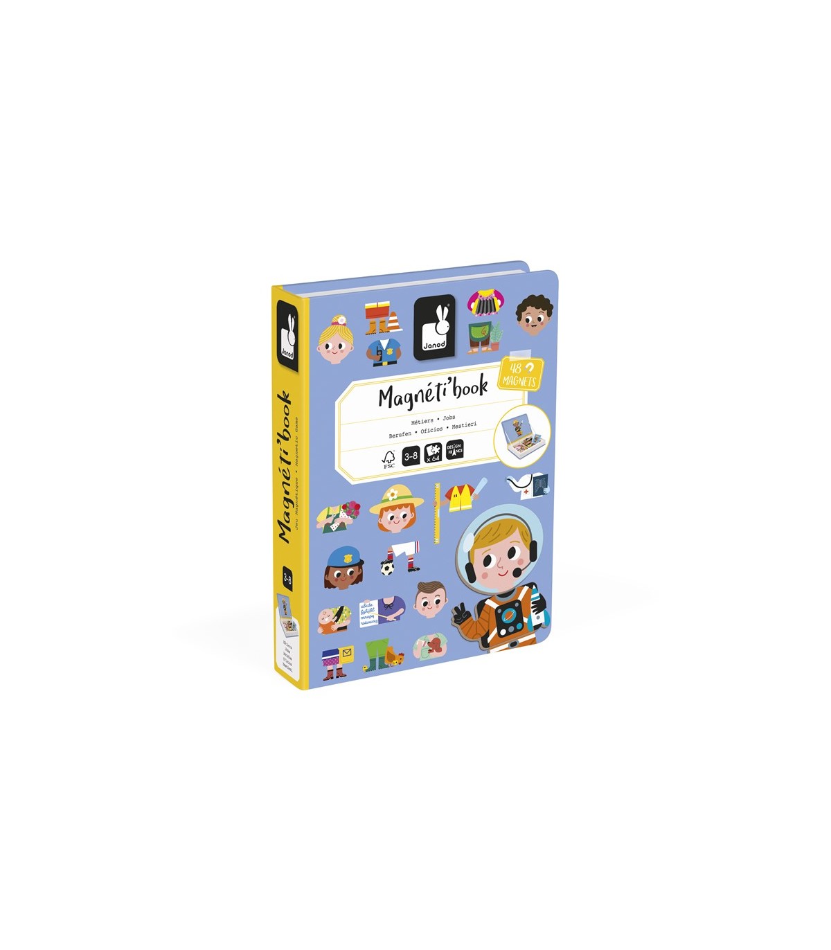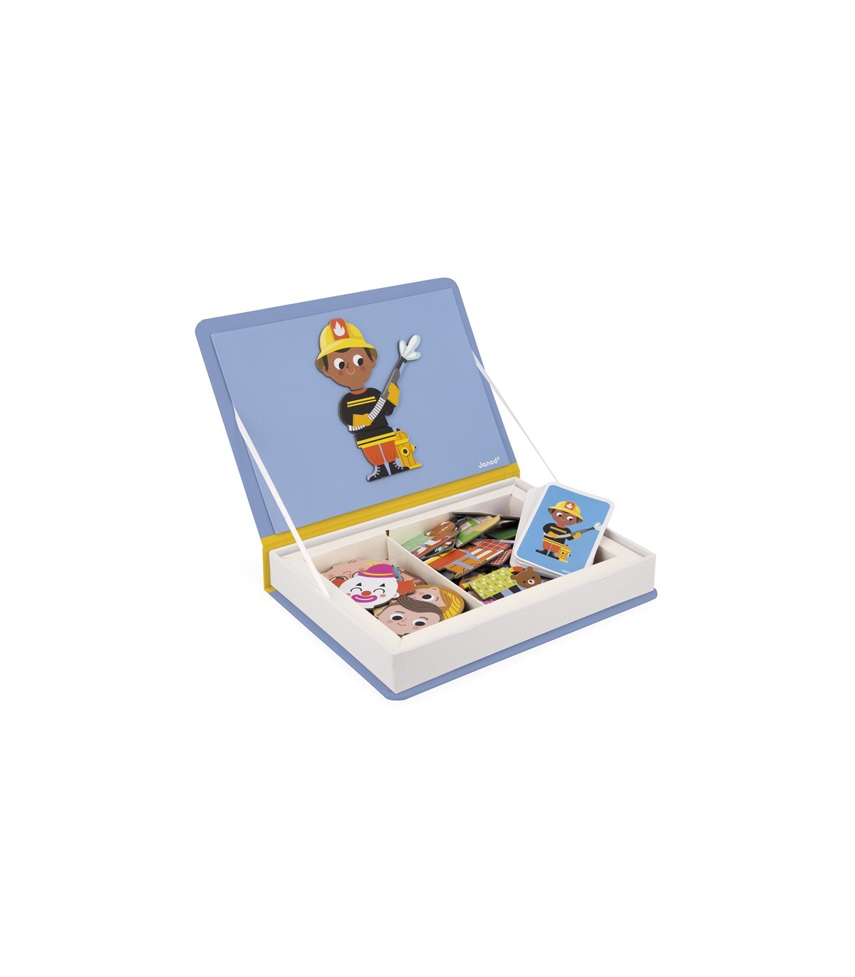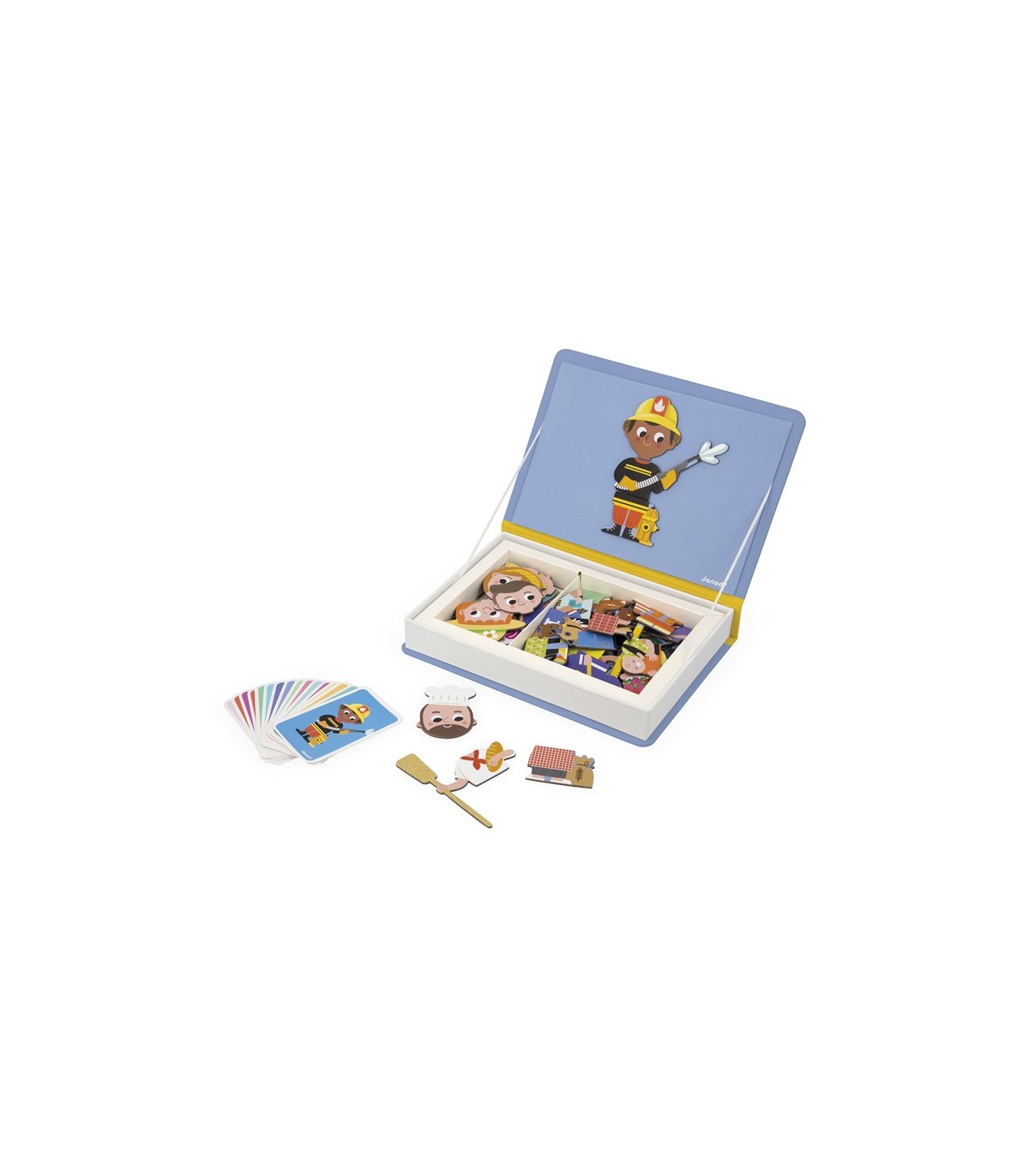 ¿Y si jugamos a inventarnos profesiones? ¿Cuál será la combinación más inesperada que se les ocurra a los niños? Con este Magnéti'Book dedicado a los oficios, los niños a partir de 3 años descubrirán 16 ocupaciones, además de imaginarse un montón más. Los Magnéti'Books son unos estuches magnéticos con un montón de imanes que se colocan en una superficie magnética.