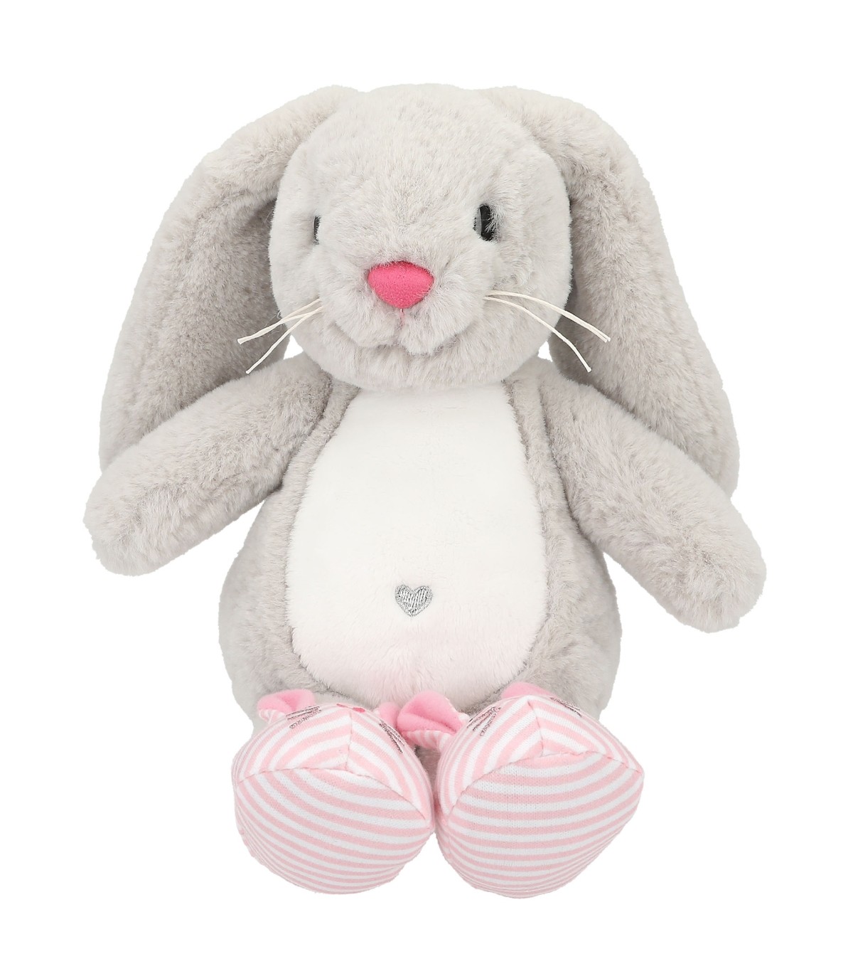 De un salto, directo al corazón. El conejo de peluche Nelly de la colección Princess Mimi es de peluche gris supersuave y tiene orejas caídas monísimas, facciones bordadas y graciosos zapatitos a rayas. Material: poliéster 100 por 100.
