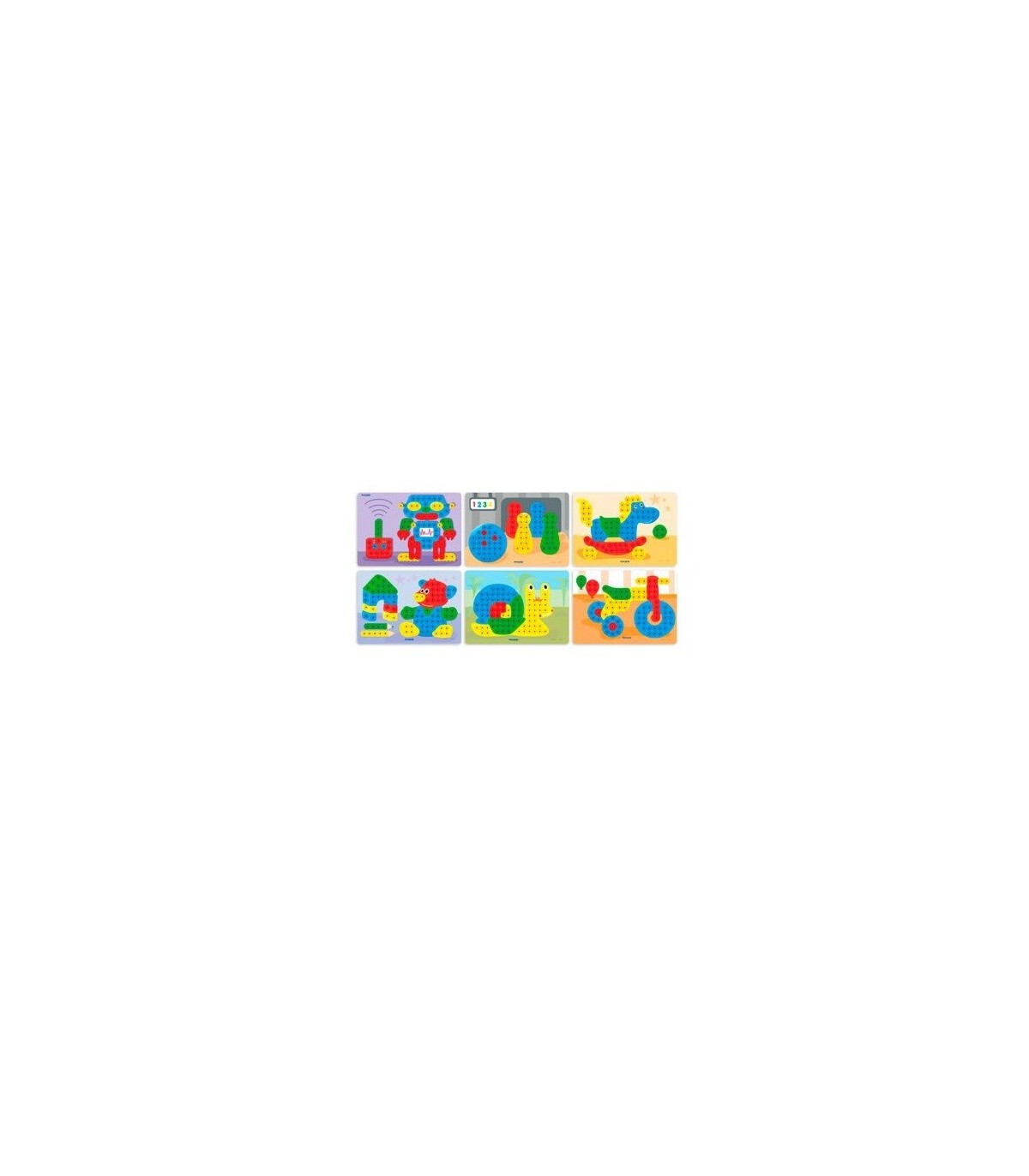 El clásico juego de los mosaicos. Mediante ejercicios de concentración y atención, permite el desarrollo de la coordinación viso-motora, la creatividad, la orientación espacial y la discriminación de colores.