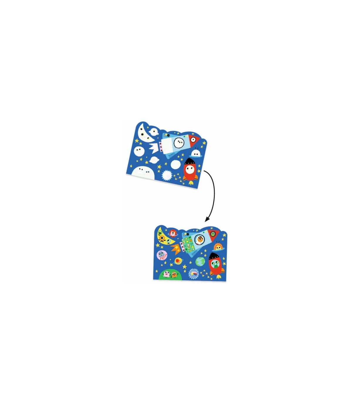 Un pack de acuarelas adecuado para niños a partir de 18 meses. El niño colorea las partes blancas con el lápiz de agua para descubrir lo que se esconde en el cielo. Es mágico: los dibujos aparecen y cambian de color. Las tablas se secan y el niño vuelve a empezar.