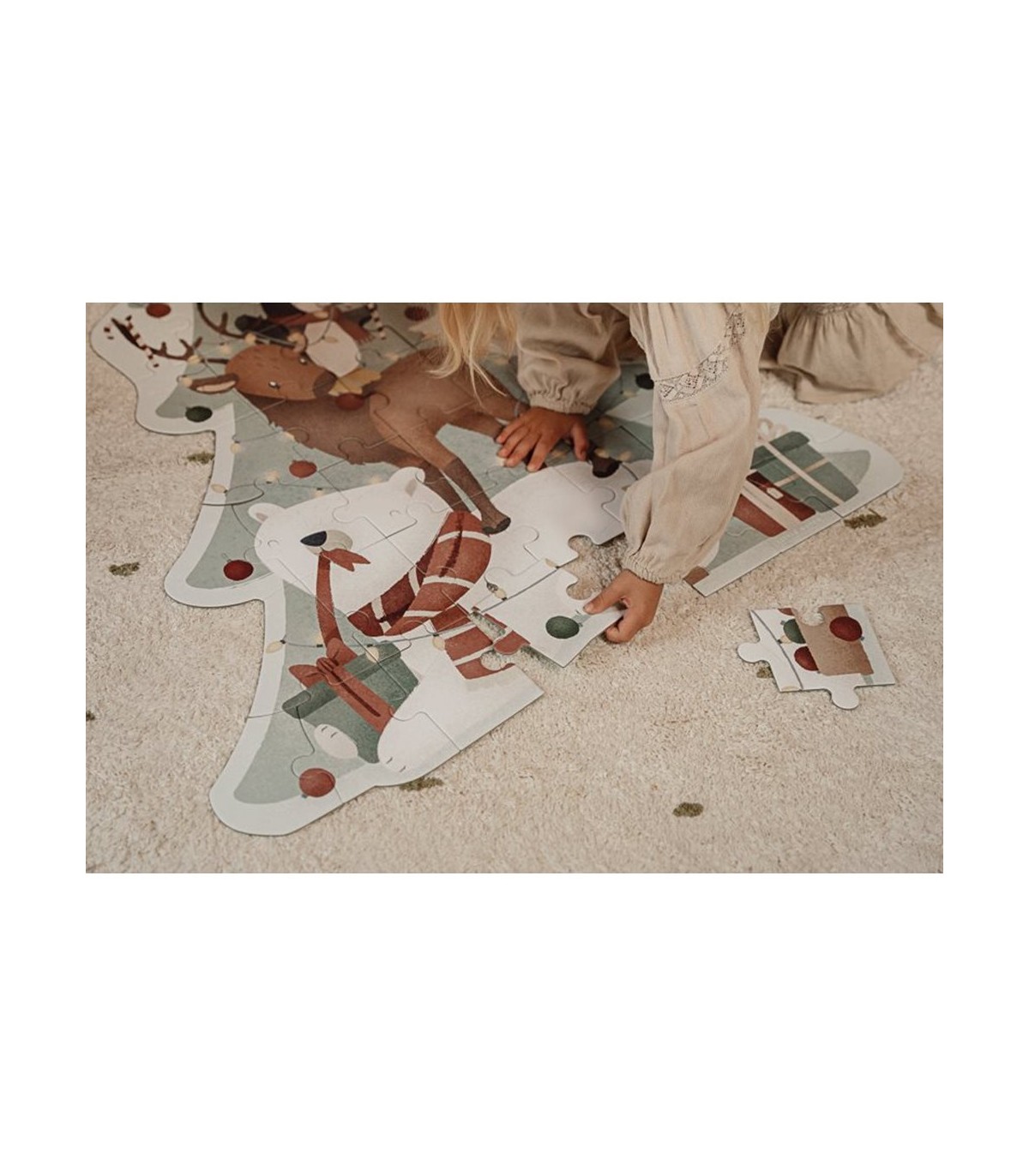 Disfruten de las fiestas y resuelvan juntos este rompecabezas navideño XL. Siéntate en el suelo y coloca las 35 piezas en el lugar correcto para crear una enorme ilustración de 93 cm. El reno, el conejo y sus amigos están ocupados decorando su árbol de Navidad. El rompecabezas navideño XL mejorará la concentración y la coordinación ojo-mano de tu pequeño. ¿Qué más puedes ver?
