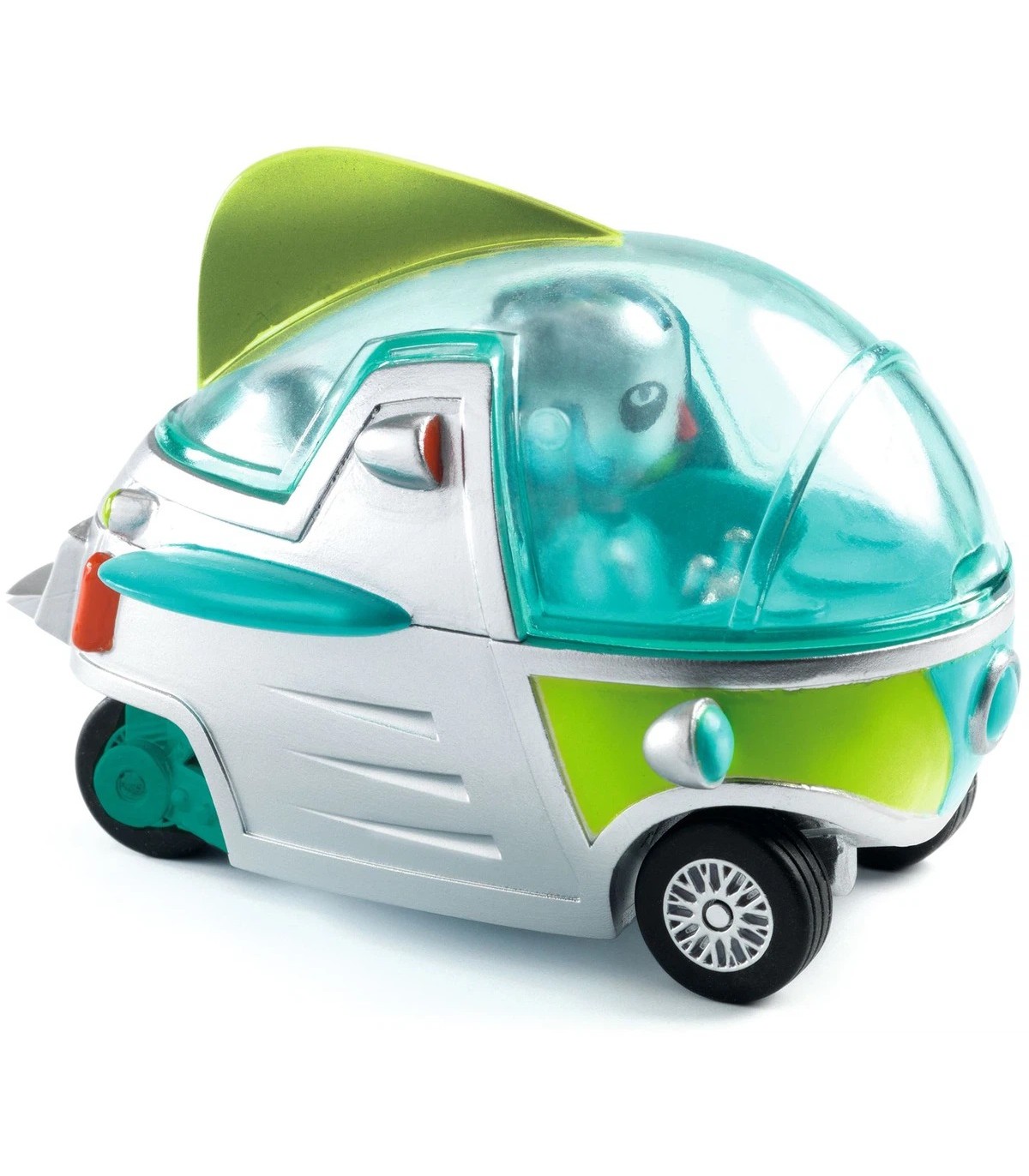 Vehículo de metal a escala 1:43 con suspensión en las ruedas. El piloto gira la cabeza. No extraíble. Ruedas de goma.