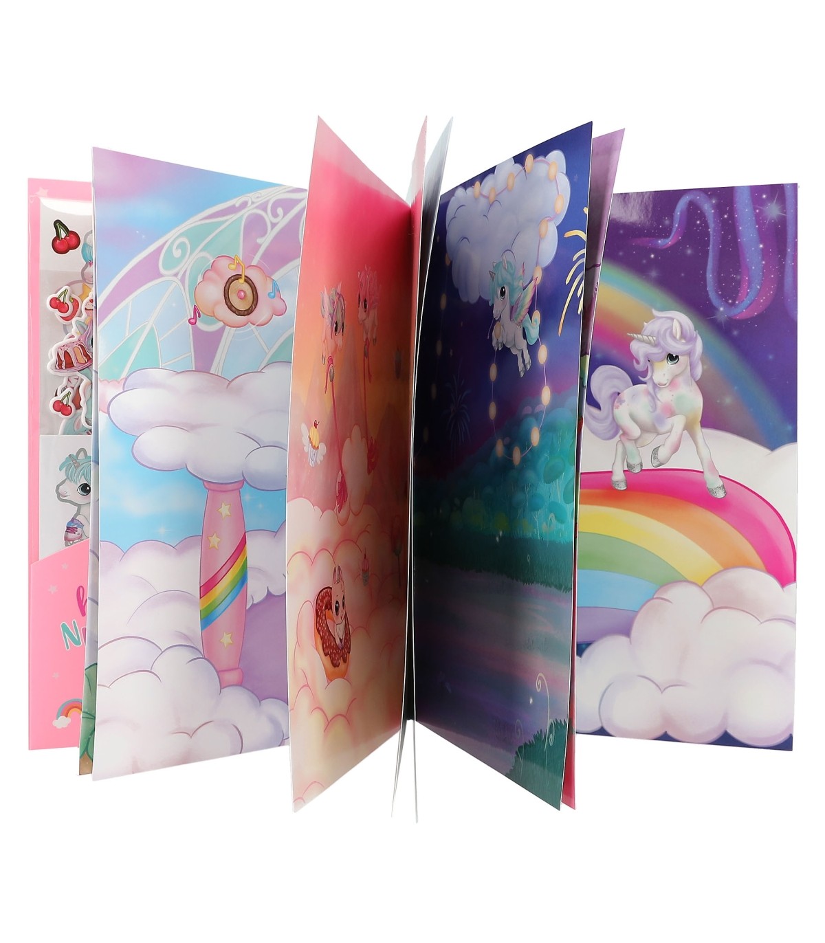 Create your Unicorn World: 20 páginas con fondos espectaculares para decorar y personalizar con ayuyda de 2 hojas de pegatinas brillantes, 2 hojas de pegatinas plateadas y 2 hojas de pegatinas de goma espuma. ¡Diversión a lo grande con unicornios y pegatinas, garantizada 100 %!