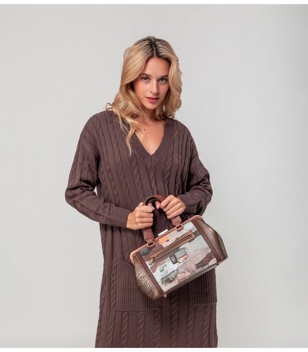 Este bolso de boquilla es de tamaño medio-grande y cuenta con bolsillo trasero. Tiene dos asas de mano y una bandolera regulable extraíble. El interior es forrado y cuenta con bolsillos. Prepárate para este viaje hacia el interior de la tierra con tu nuevo favorito de Anekke Core.