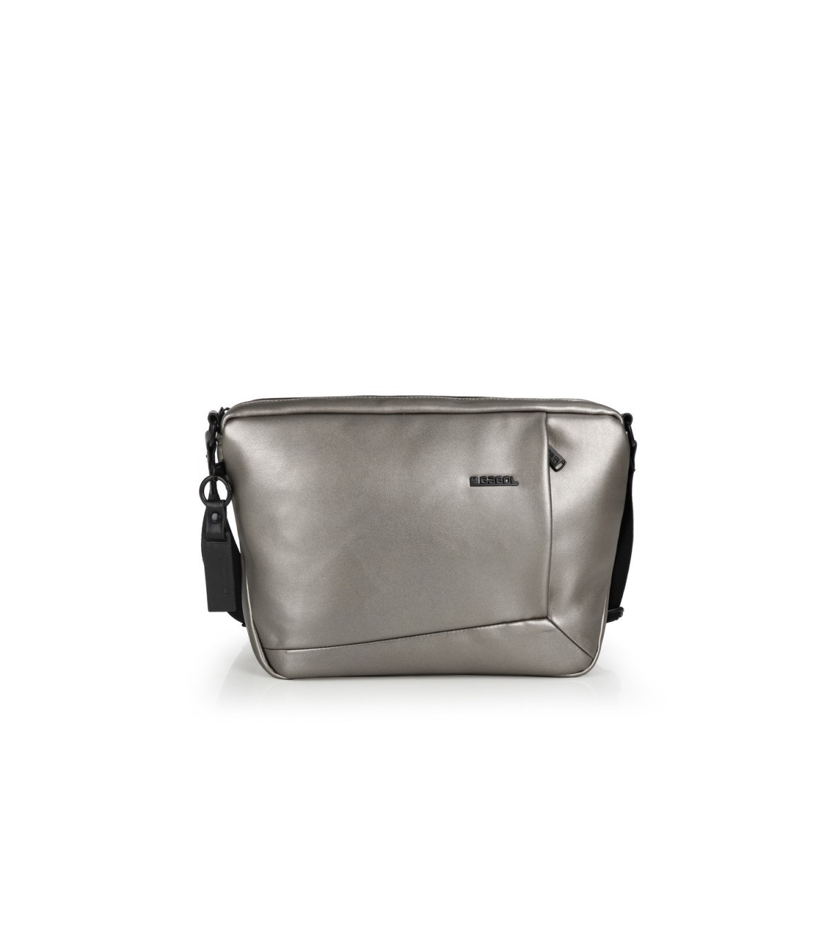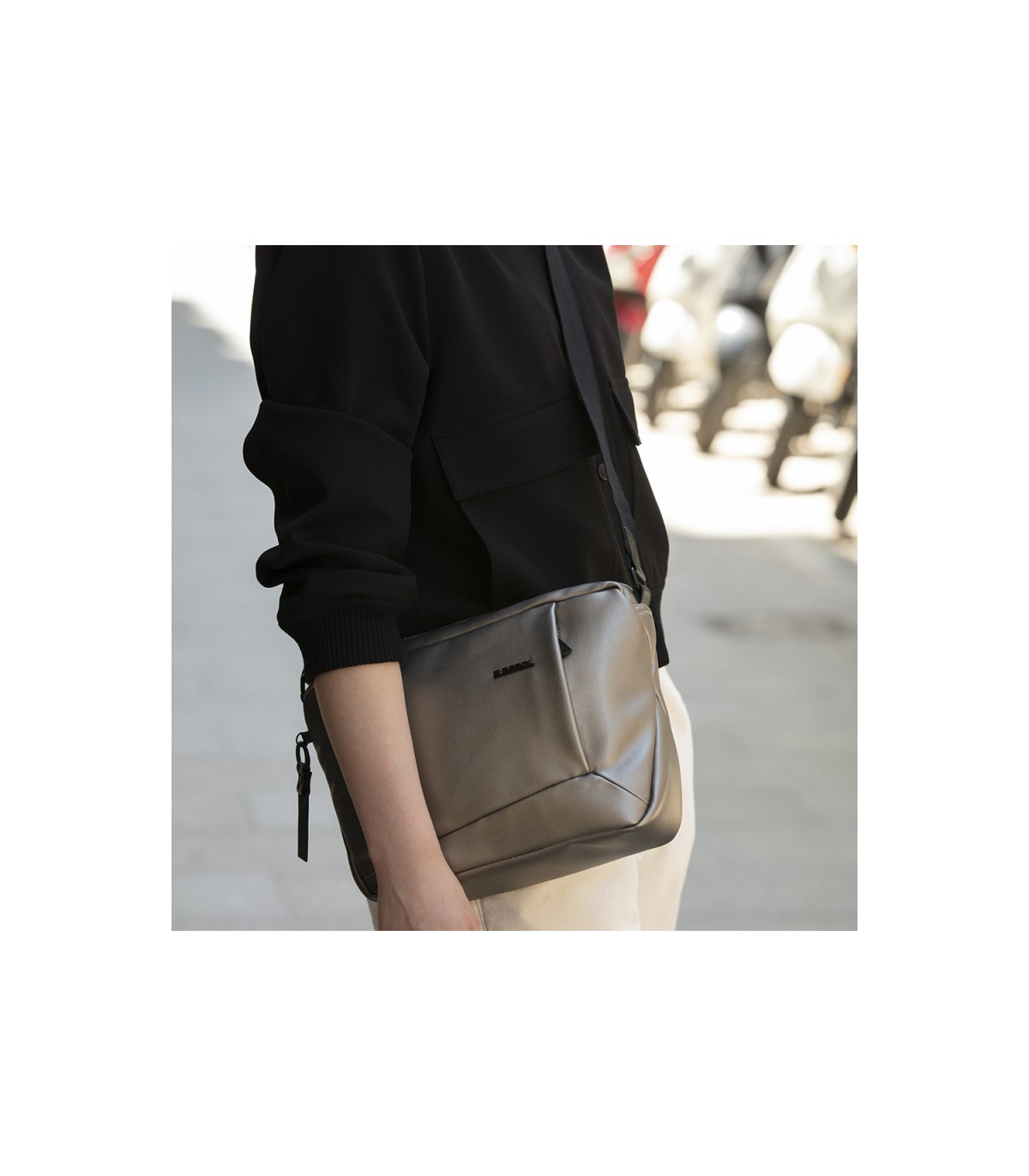 Bolso bandolera de piel sintética, champán. Fabricado con materiales libres de PVC. Medidas: 30x20x9 cm