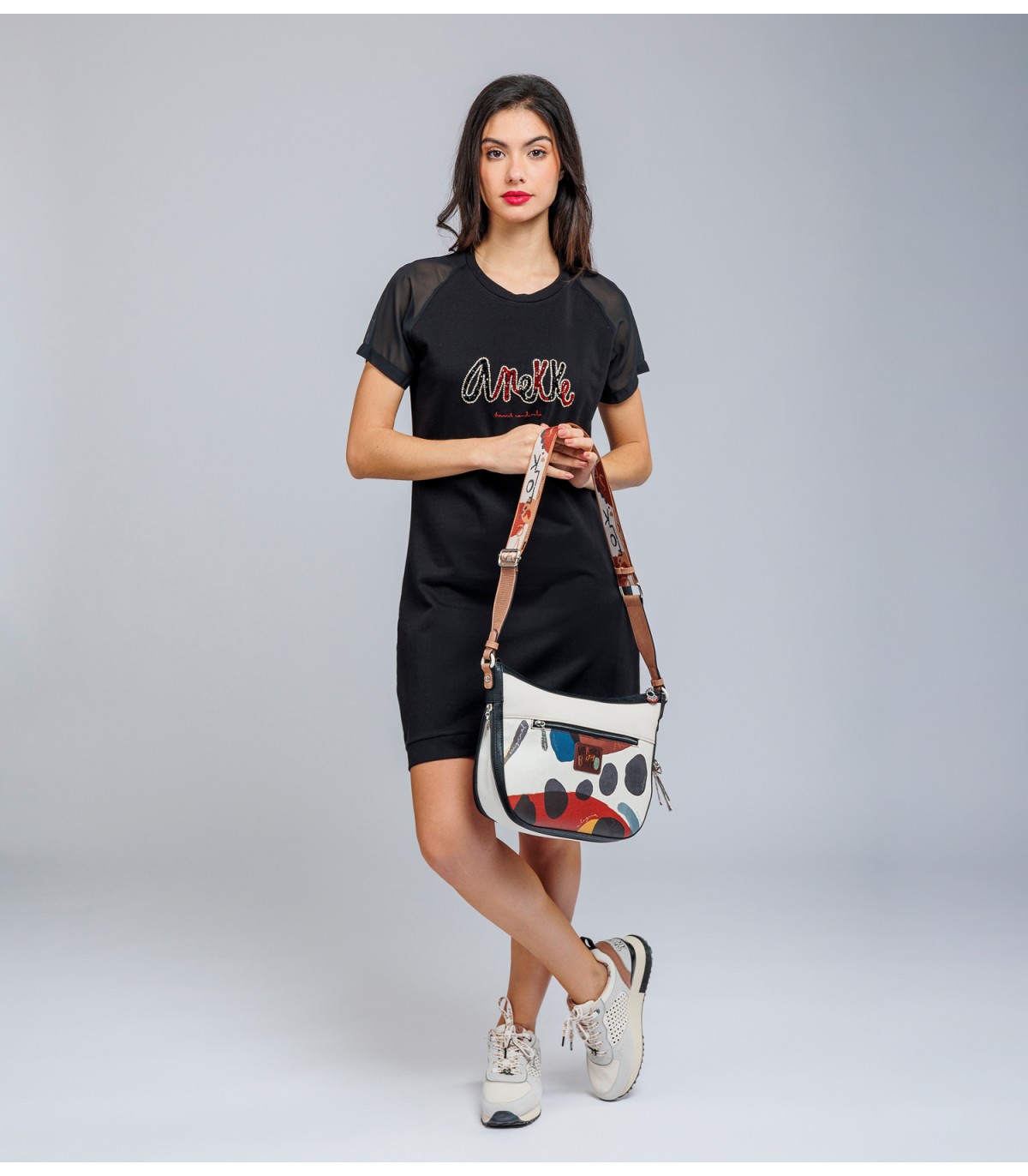 Esta original bandolera de tamaño grande se abre mediante cremallera por la parte superior. Cuenta con un amplio interior forrado y bolsillos, además de bolsillo exterior en la parte trasera. Uno de los toques más especiales de esta bandolera es que cuenta con una cremallera que recorre toda la parte del lateral por abajo, permitiéndote abrirla para hacer el bolso más grande si lo necesitas. El asa bandolera es regulable a diferente largo. Es, sin duda, un homenaje al país que ha visto crecer a Anekke. Porque hay viajes que se hacen con el alma, y este comienza en el país al que Anekke llama hogar.