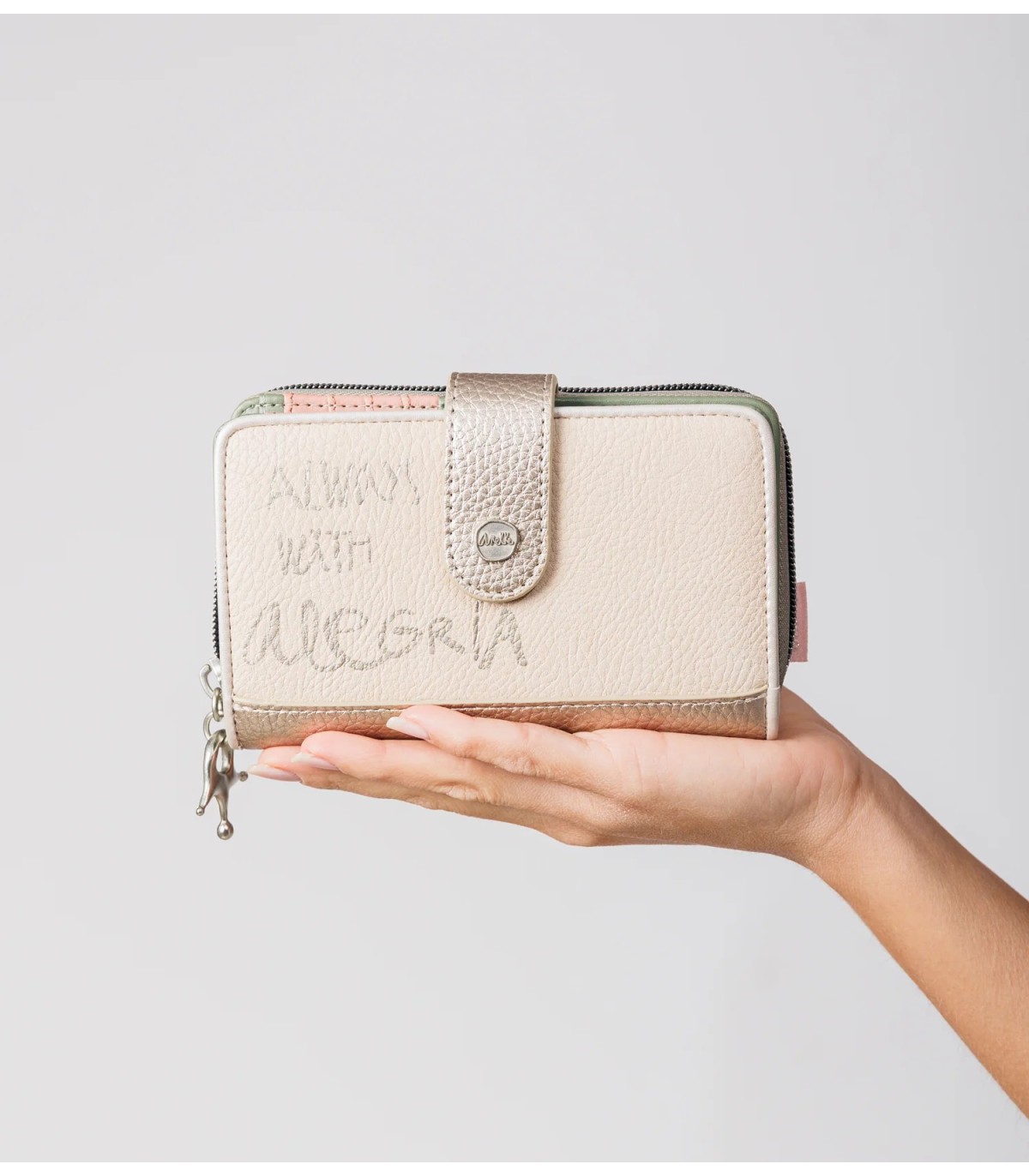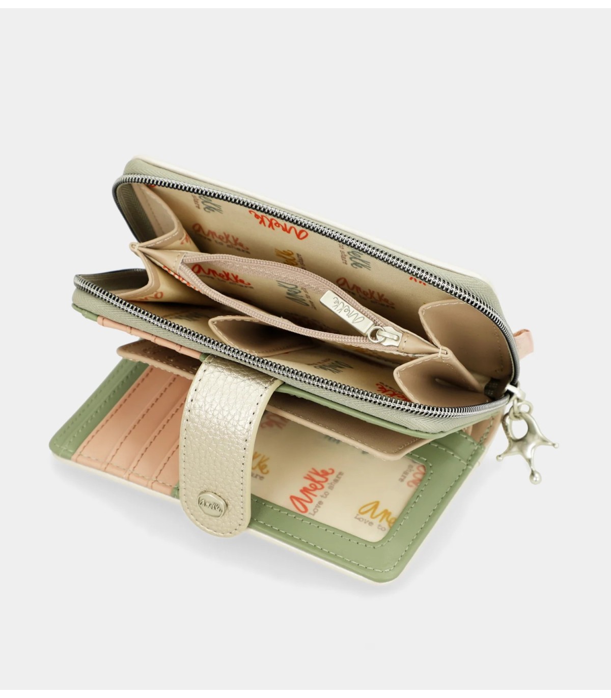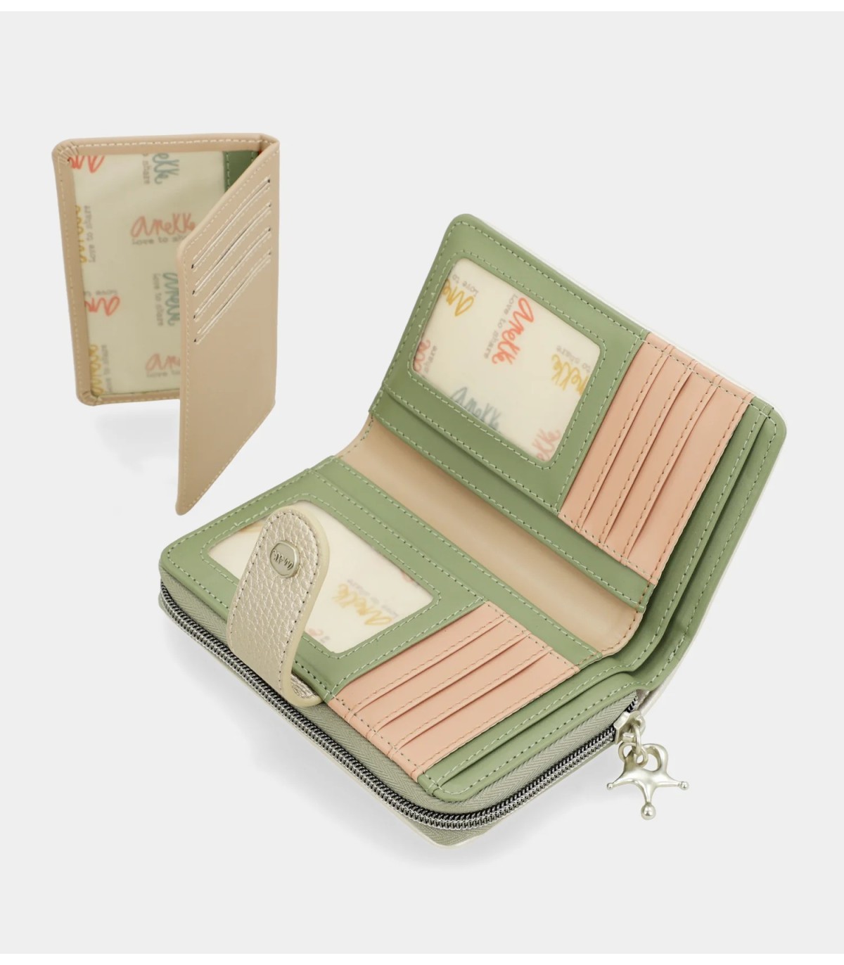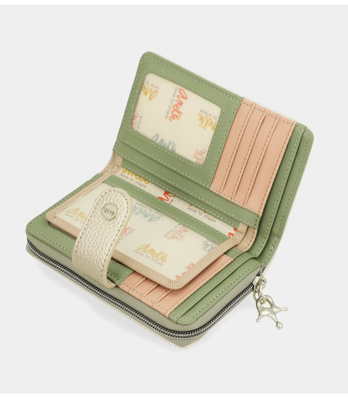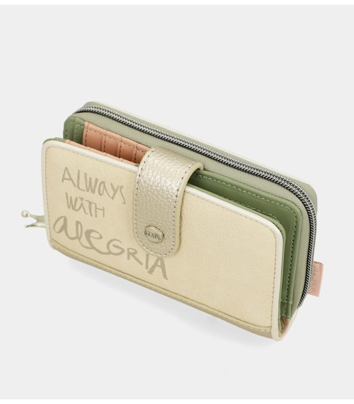 Este billetero mediano cuenta con dos compartimentos: el trasero, con cierre de lengüeta, que cuenta con múltiples espacios para tarjetas y billetes; y el superior, con cierre de cremallera, que cuenta en su interior con espacio para monedas. Todo el interior está forrado. ¿Lista para tener un nuevo complemento favorito?