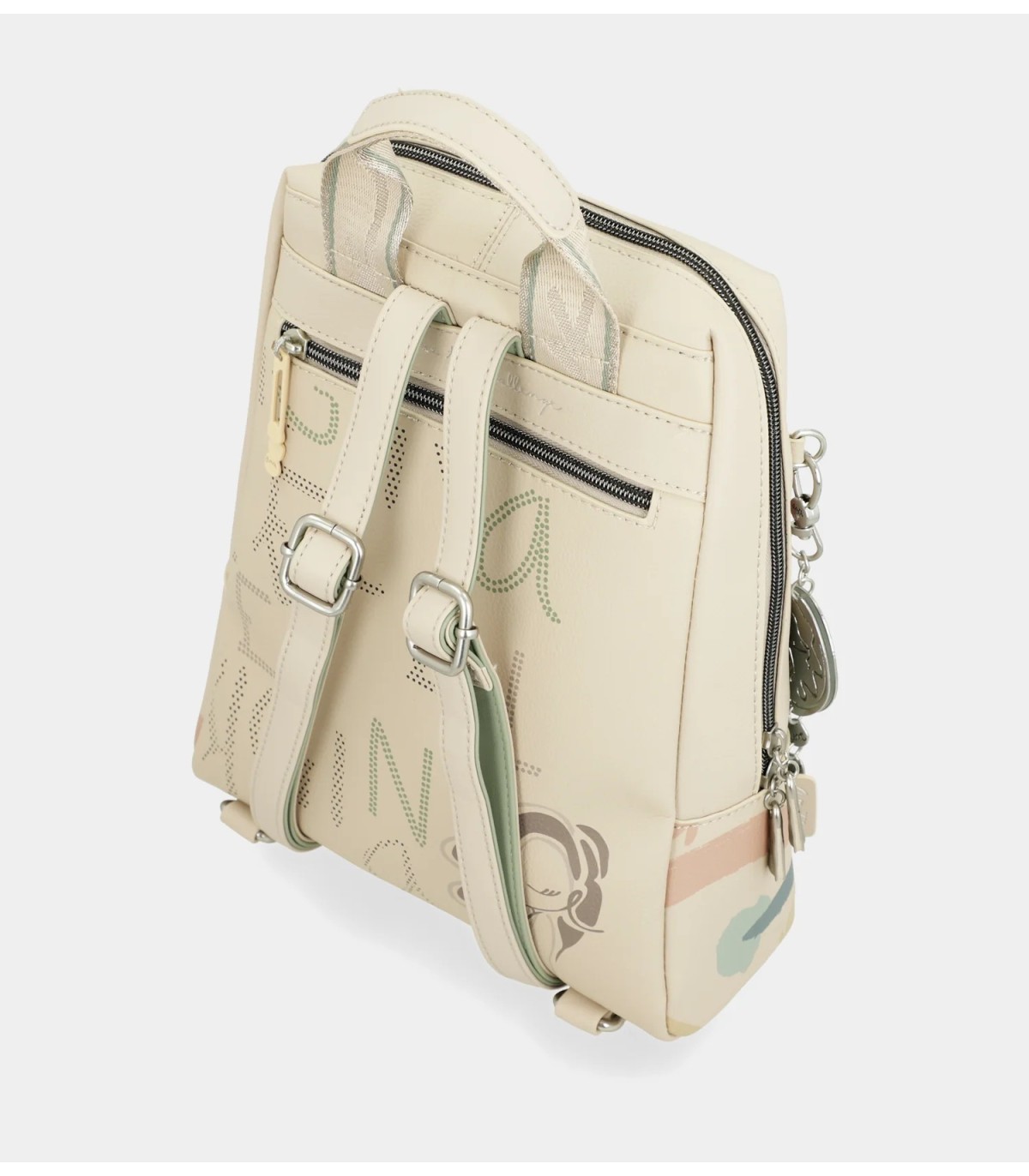 Este producto forma parte de la línea Original. Esta colección de formas rectas y con un diseño mínimal relata a través de sus detalles en bordados, superposiciones o pins la historia del regreso al hogar de Anekke. Tras años viajando por el mundo, Anekke vuelve a su hogar para reencontrarse consigo misma, con su mejor versión: con la versión original. Es una línea que combina comodidad con versatilidad, sumamente cuidada en los detalles. Esta mochila es de tamaño medio-grande y tiene bolsillos en el frontal y la trasera. La mochila cuenta con dos asas de mochila regulables a diferente largo, más un asa agarradera para la mano. El interior es forrado y cuenta con bolsillos.