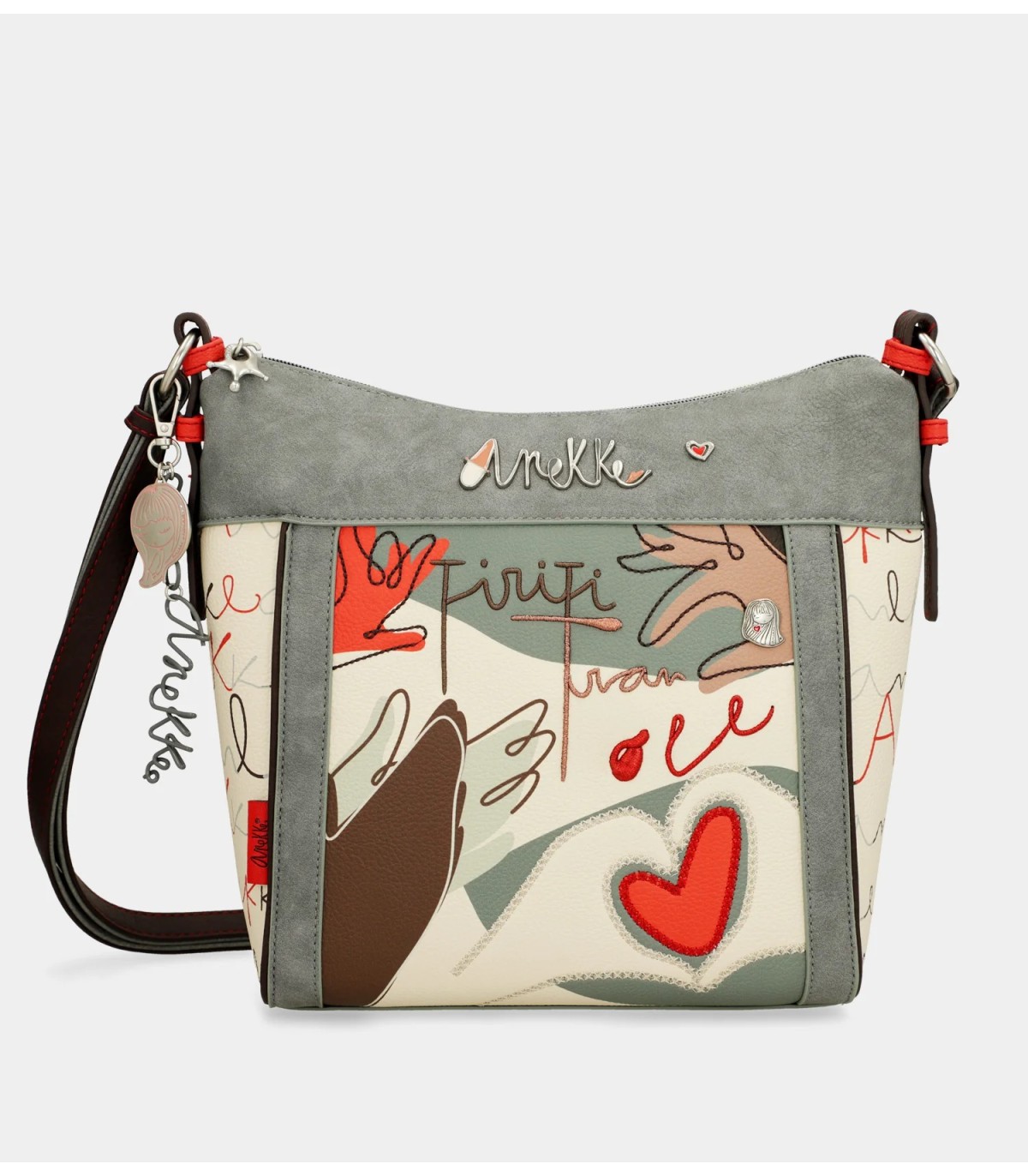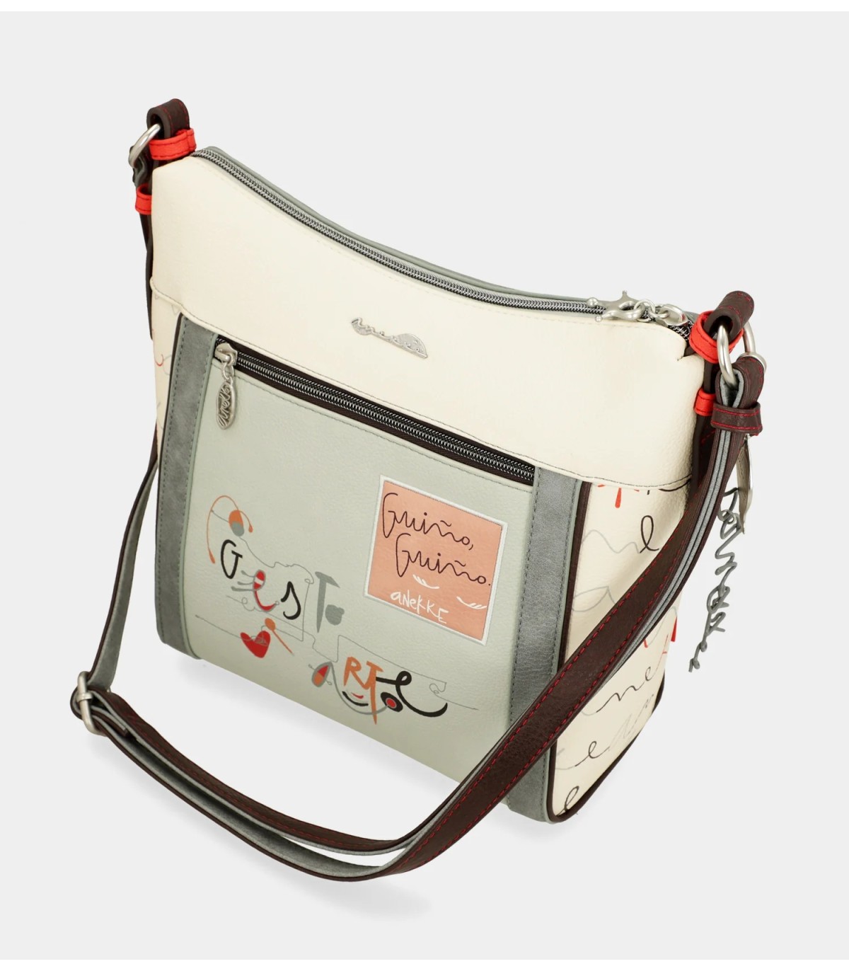 Este producto forma parte de la línea Ole. Esta cápsula se inspira en la alegría del carácter español, algo que muchas veces se representa con expresiones como "ole", que utilizamos para expresar que algo es bonito o que ha salido bien. Las manos son uno de los principales elementos del estampado, ya que las utilizamos tanto para expresarnos como para bailar, con toques artísticos inspirados en Miró o frases inspiradas en música. Esta bandolera es de tamaño medio-grande, tiene cierre de cremallera y forro y bolsillos interiores, así como un bolsillo trasero exterior para mayor comodidad. El asa es regulable a diferente largo. Y es que no hay nada que tenga más acento que el alma. Y tu nuevo favorito de Anekke, te lo va a recordar cada día.