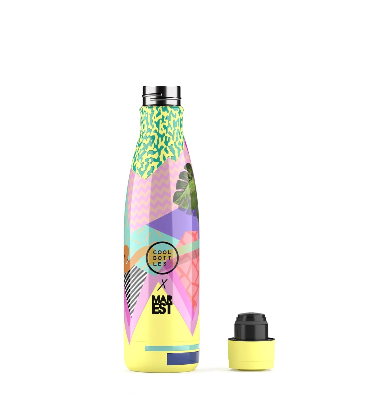 El diseño de la botella Mediterranean, creado exclusivamente para Cool Bottles, es la expresión pura de la alegría, con una paleta de colores vibrante mezclando naturaleza y formas geométricas, con todo el contraste de la vida en nuestro Mediterráneo.