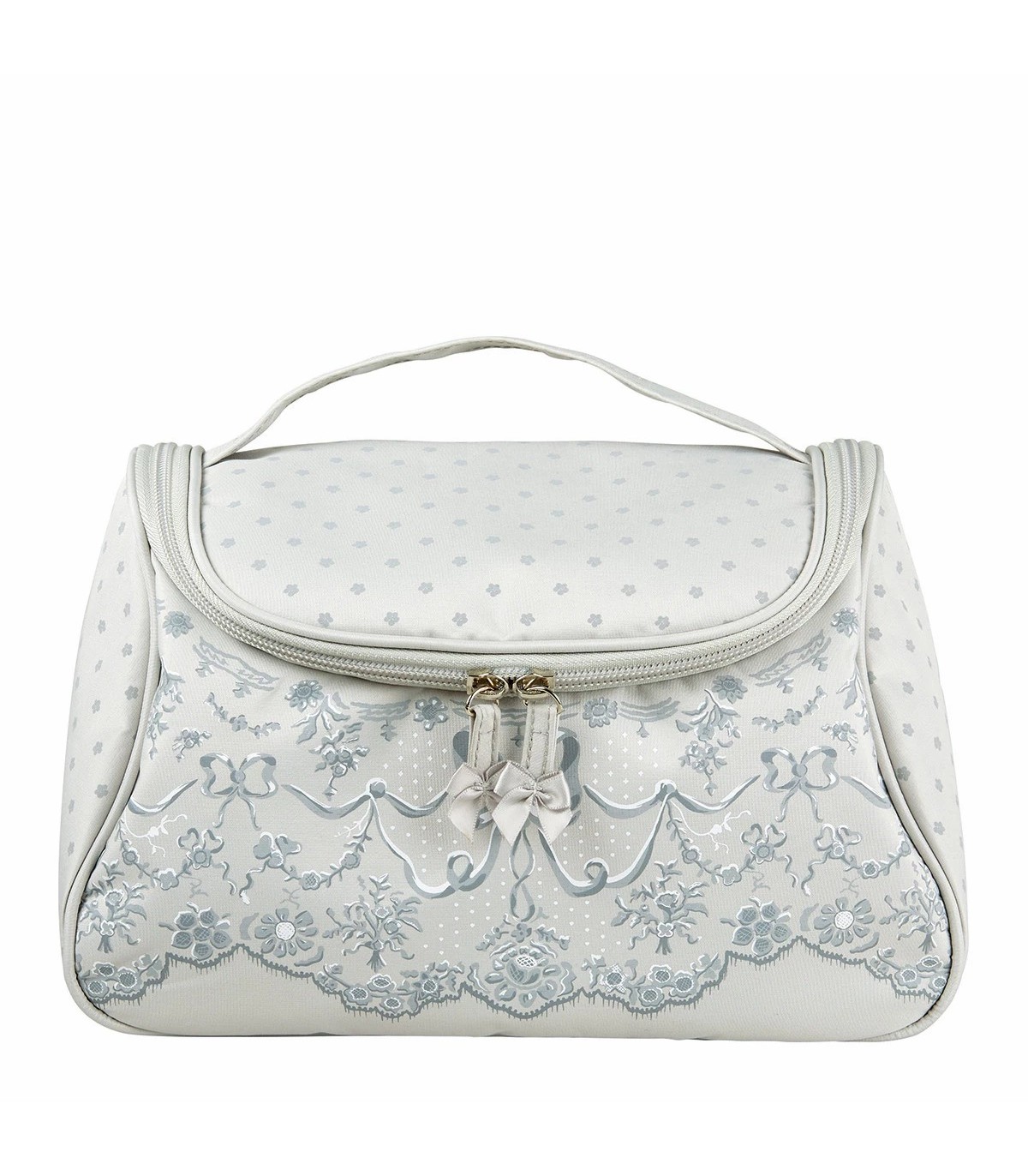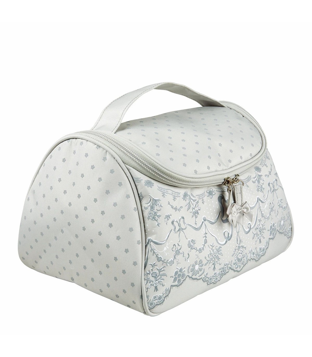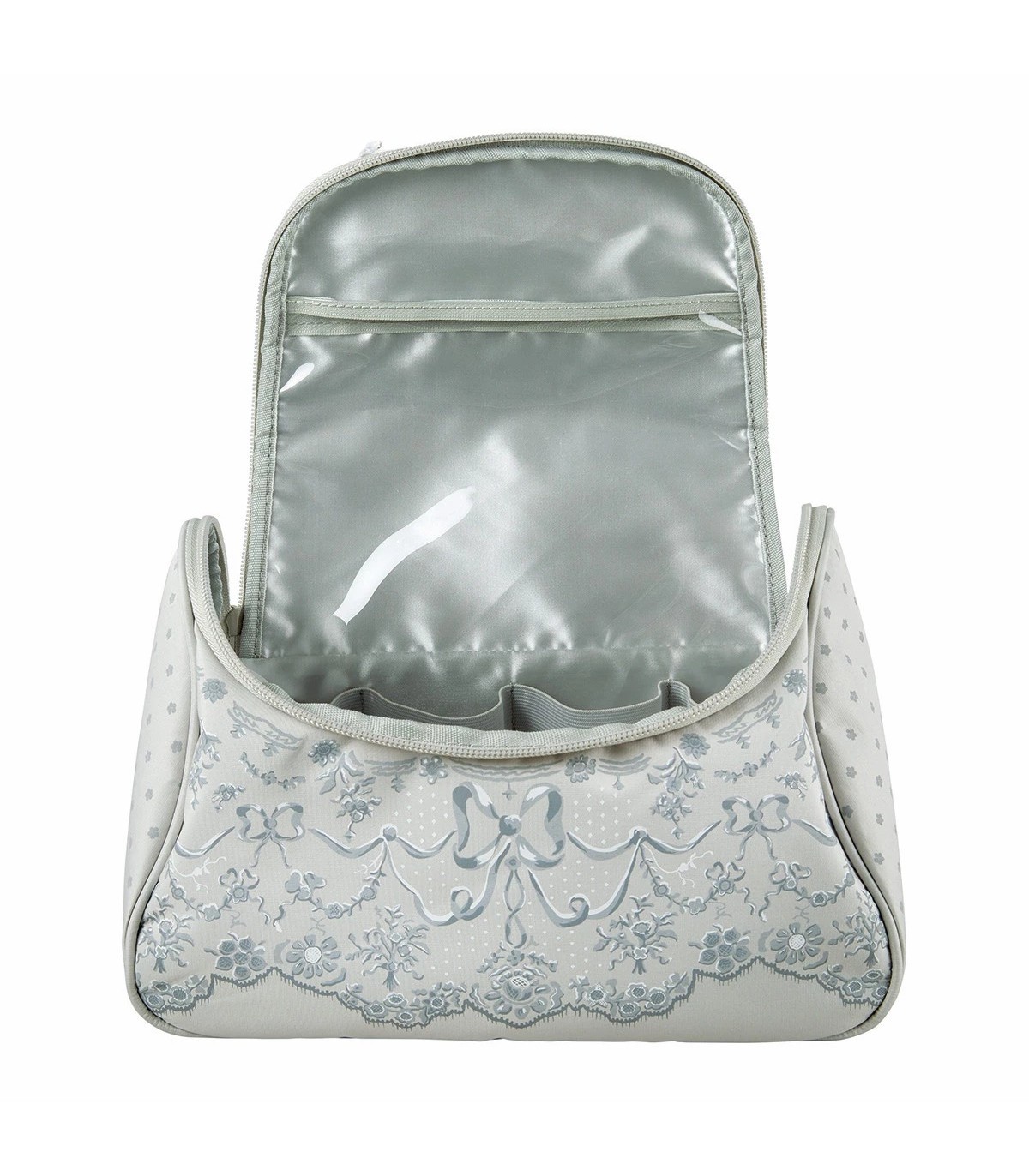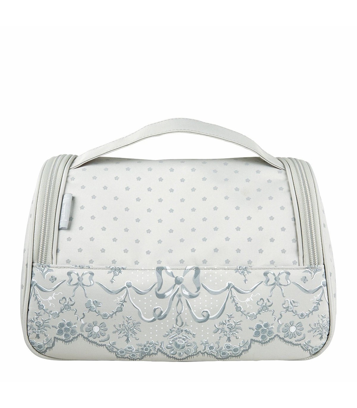 El decorado estrella de Mathilde M., adornado con su elegante lazo emblemático, se reinterpreta como una acuarela pintada a mano alzada para dar vida a la línea de baño Dentelle Aquarelle. Esta refinada decoración adorna ahora el neceser Aquarelle Lace, un accesorio tan elegante como práctico para transportar tus productos esenciales durante tus viajes.