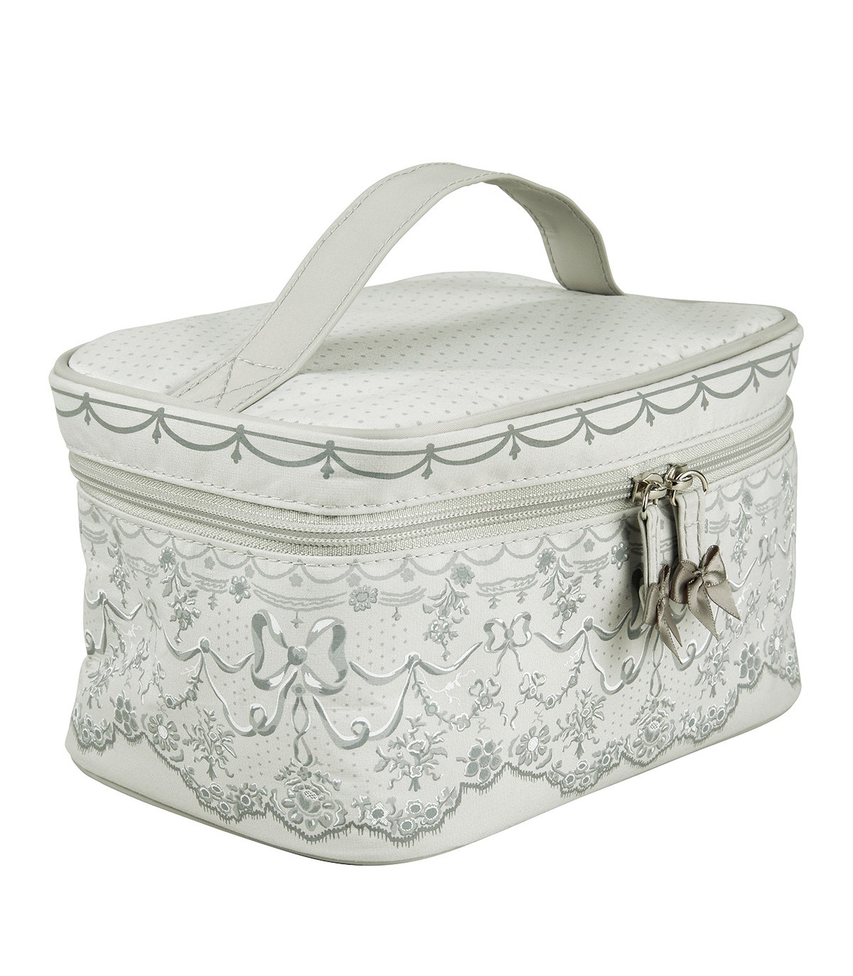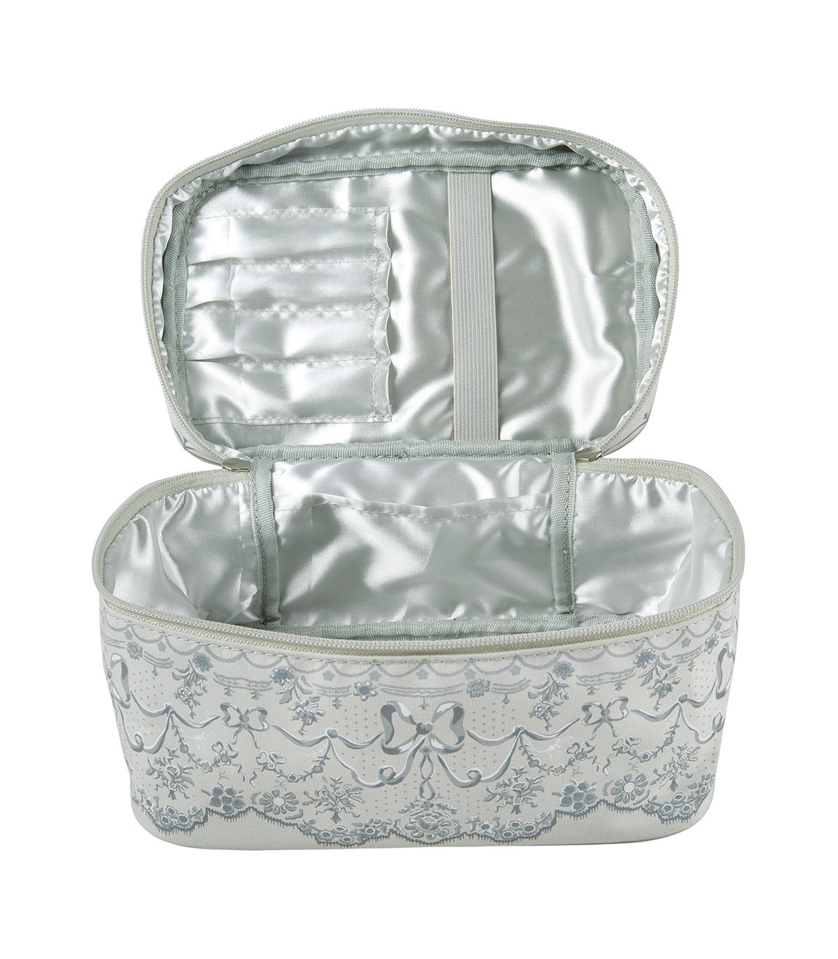 El decorado estrella de Mathilde M., adornado con su elegante lazo emblemático, se reinterpreta como una acuarela pintada a mano alzada para dar vida a la línea de baño Dentelle Aquarelle. Esta refinada decoración adorna ahora el neceser blando Aquarelle Lace, un accesorio imprescindible para guardar y llevar tus productos de belleza a todas partes.