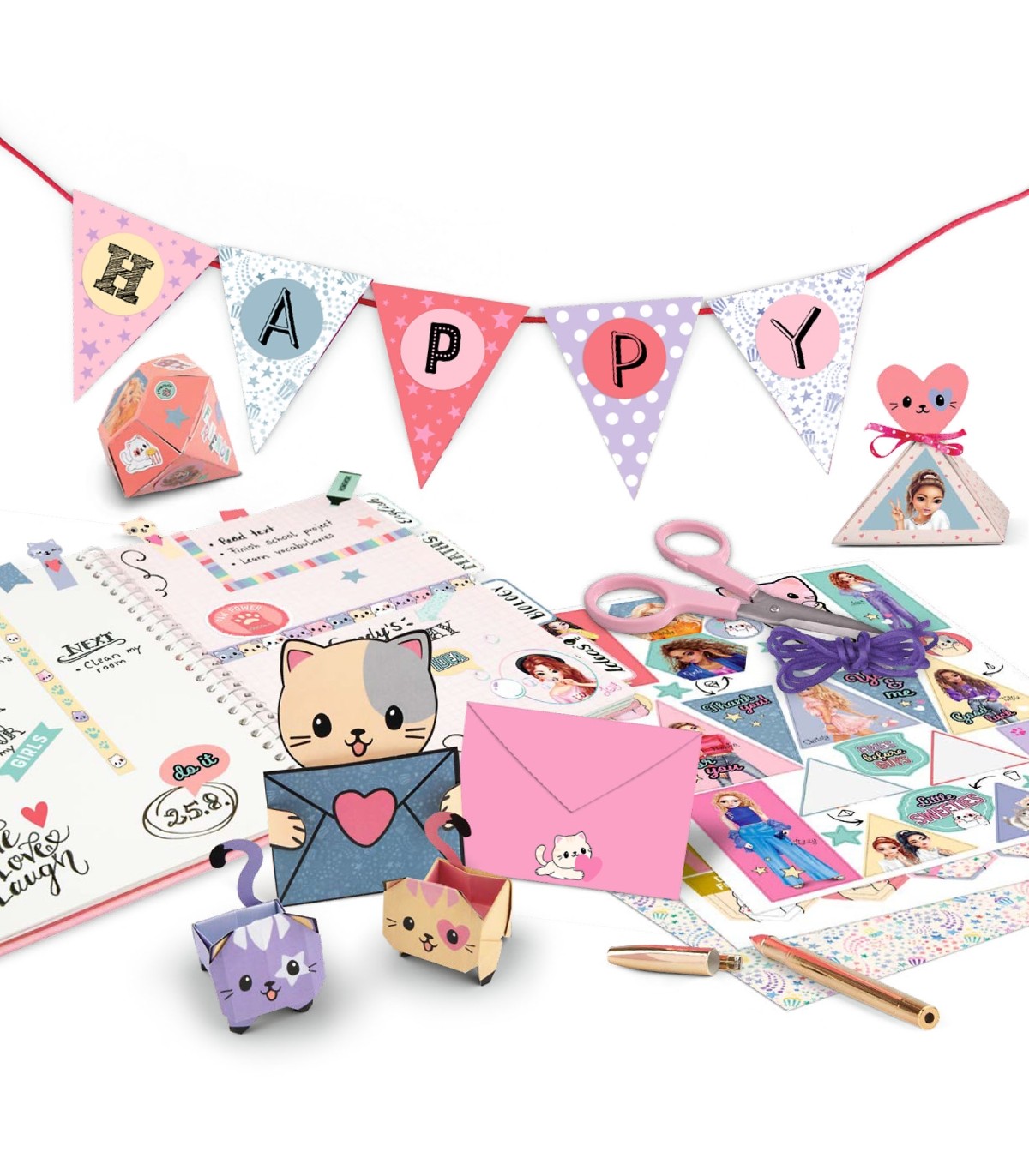 Recortar, hacer manualidades, poner pegatinas, ¡crear! Con el cuaderno HTM Paper Fun Book de TOPModel se puede desarrollar la creatividad a tope: cartas para las mejores amigas, postales, guirnaldas de banderines, paquetes preciosos, pegatinas monísimas, colgantes ¡y mucho más! Todo ello en 32 páginas, 8 hojas de pegatinas y 9 hojas de cartulina para manualidades.